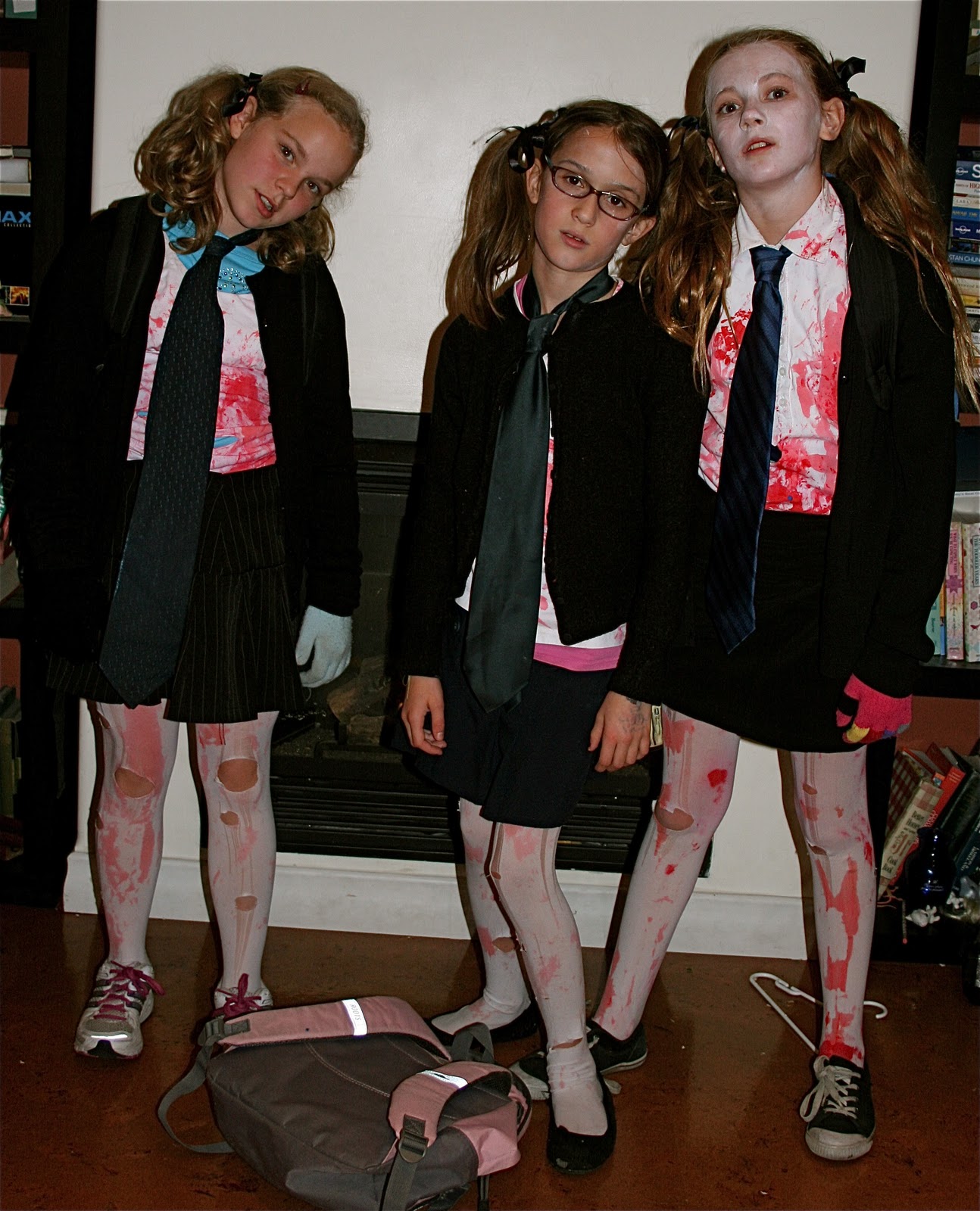 | Mic, Nem and Tabs as Zombie school-girl triplets |