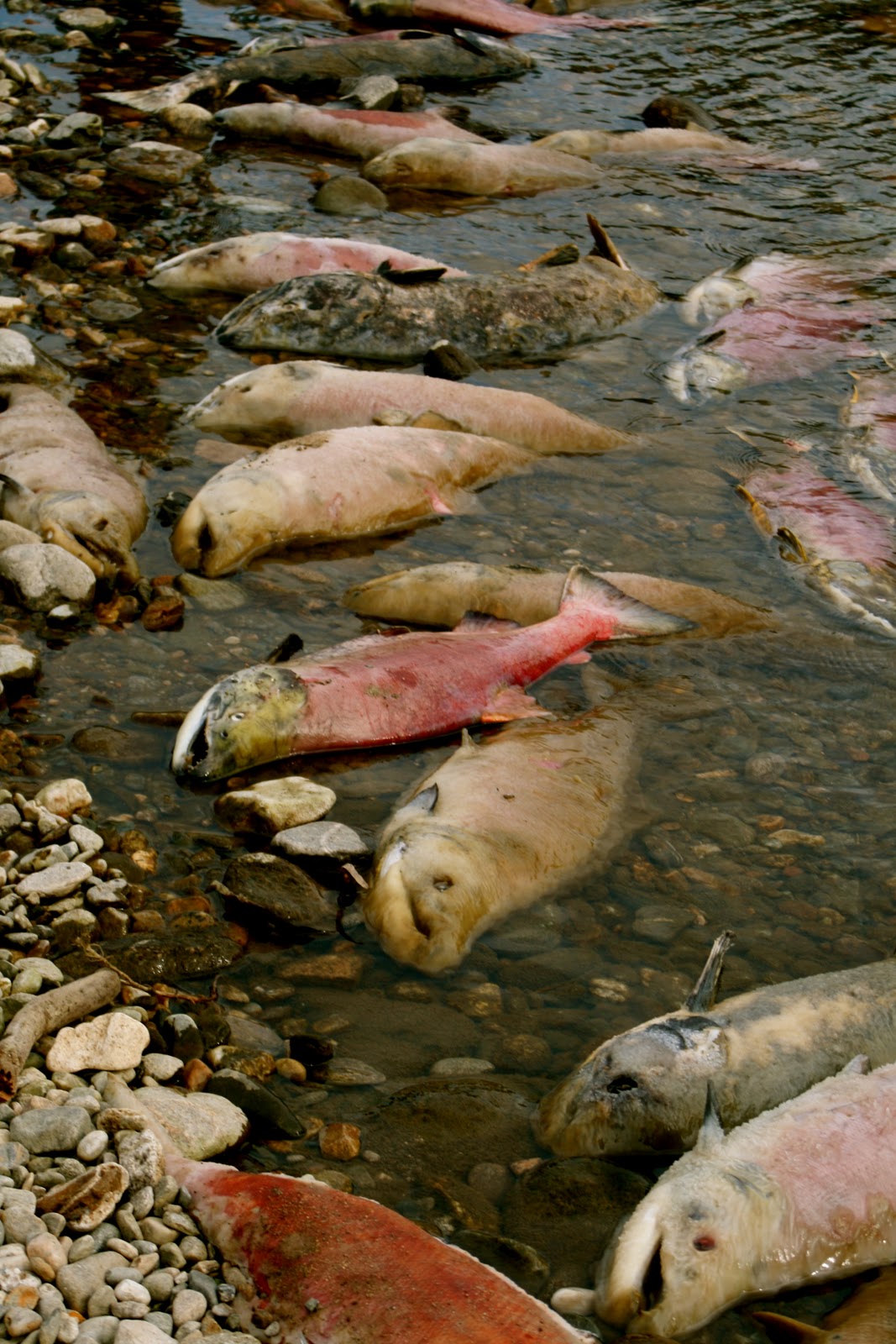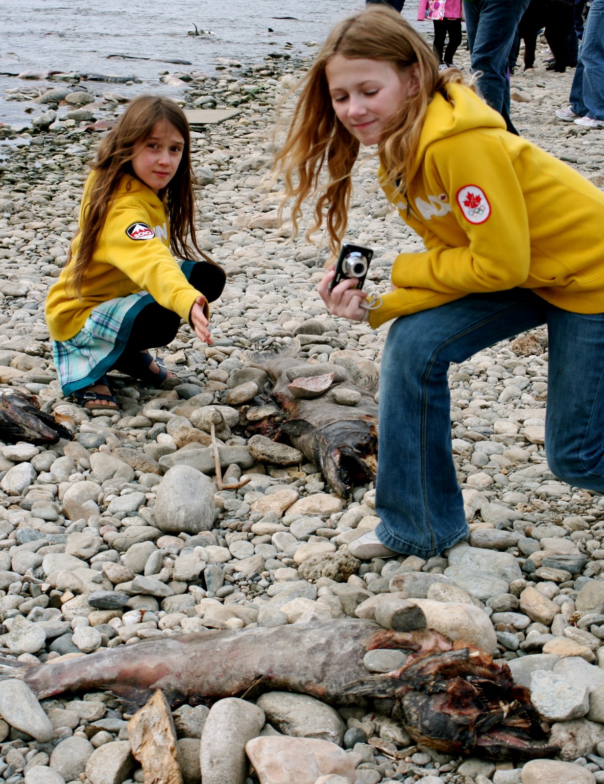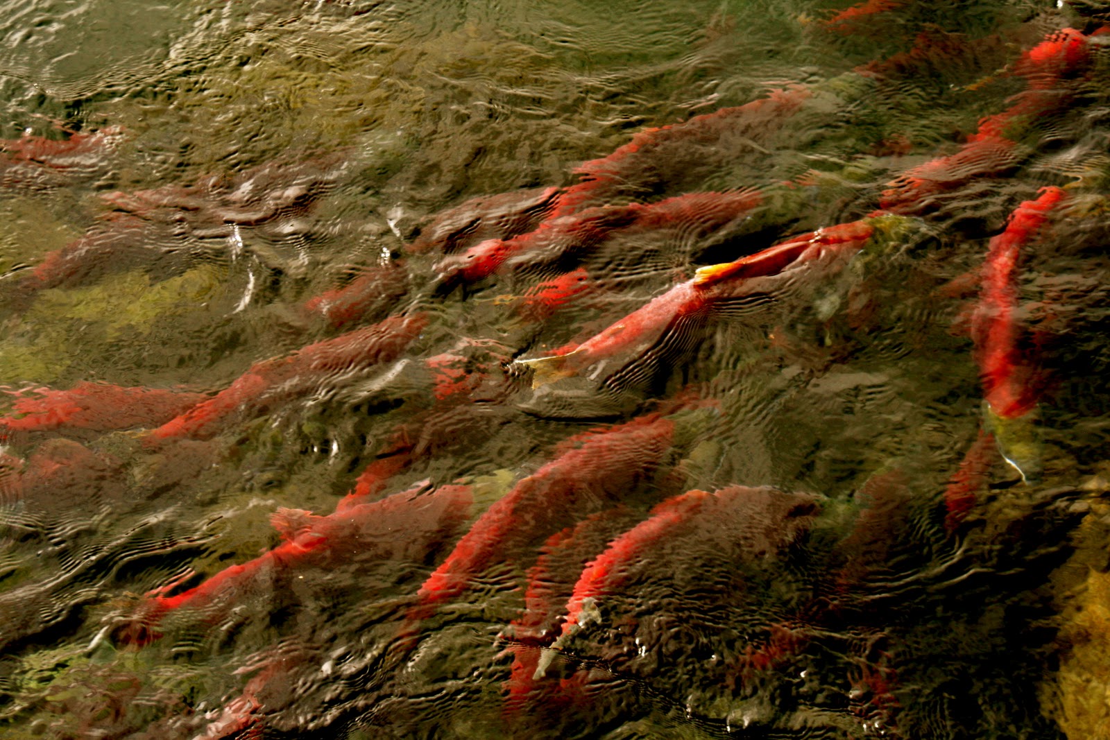 On the way home we made a detour and stopped at the Adam’s River for the annual Salmon spawning. They are ocean Sockeye Salmon–big fish. It is a huge run and the river was red with them. I had a wonderful deja-vu of a childhood class trip. In grade six or seven, I attended the very same Salmon Run with my school–Salmon Arm West Elementary. At times, I felt that grade six was yesterday as the run was so familiar to me.