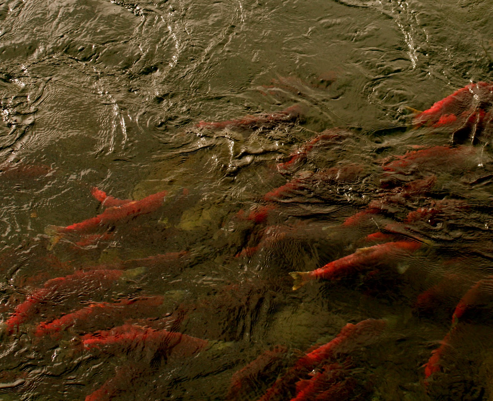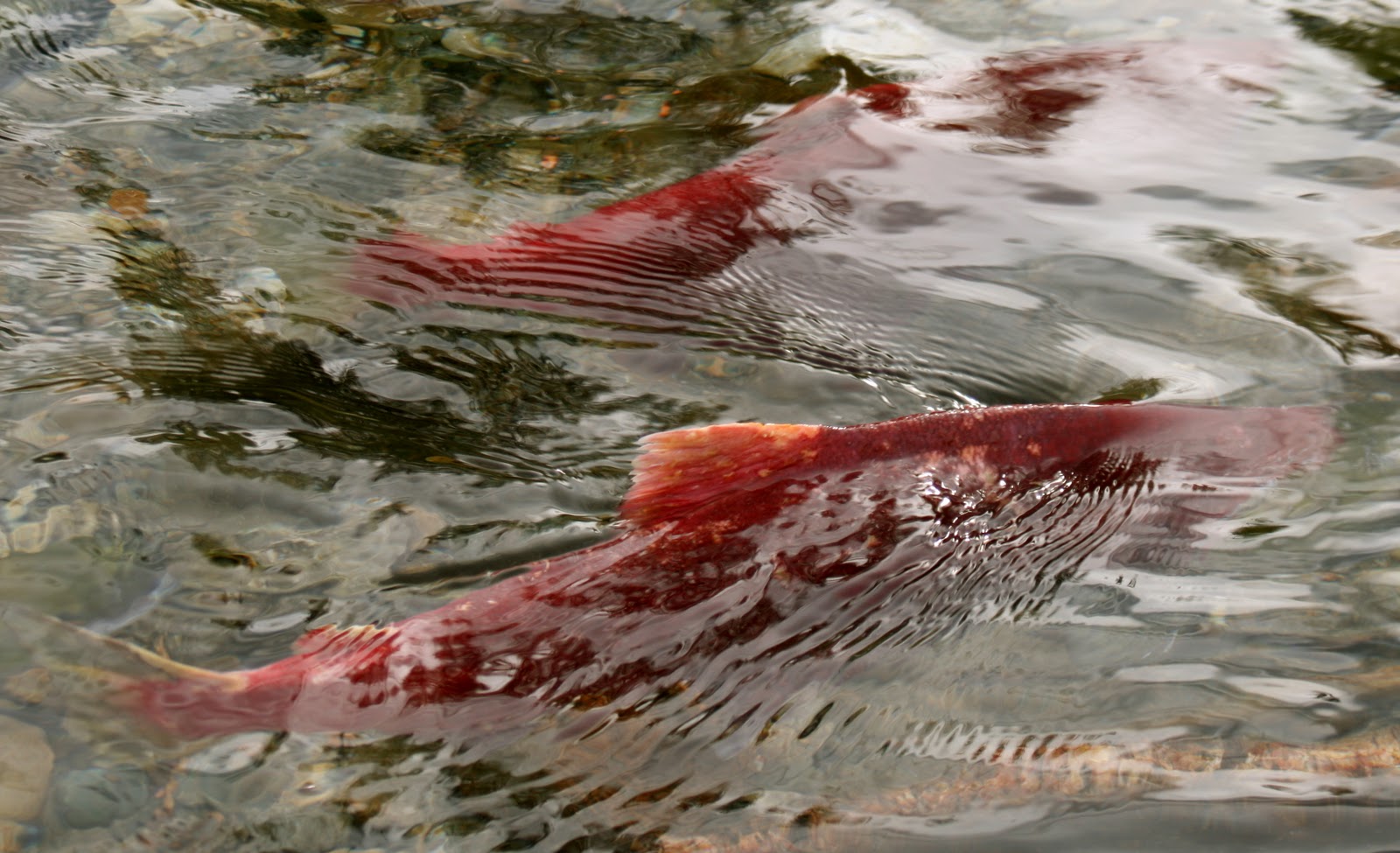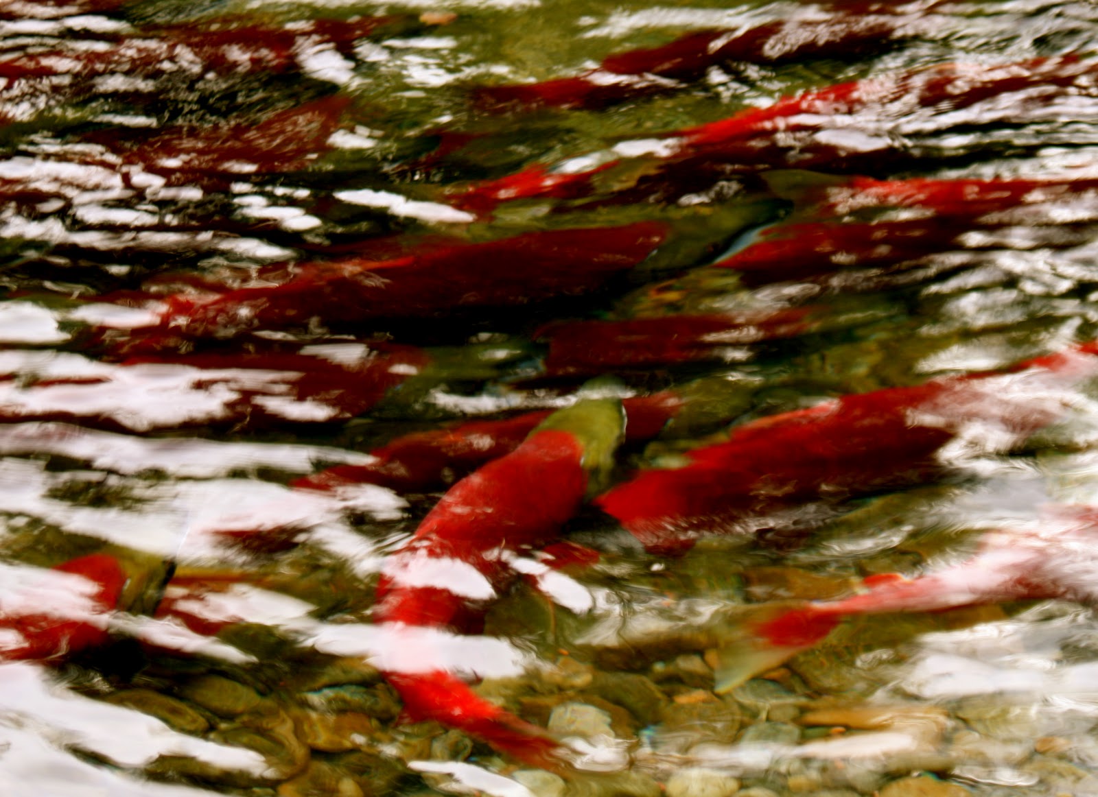 On the way home we made a detour and stopped at the Adam’s River for the annual Salmon spawning. They are ocean Sockeye Salmon–big fish. It is a huge run and the river was red with them. I had a wonderful deja-vu of a childhood class trip. In grade six or seven, I attended the very same Salmon Run with my school–Salmon Arm West Elementary. At times, I felt that grade six was yesterday as the run was so familiar to me.
