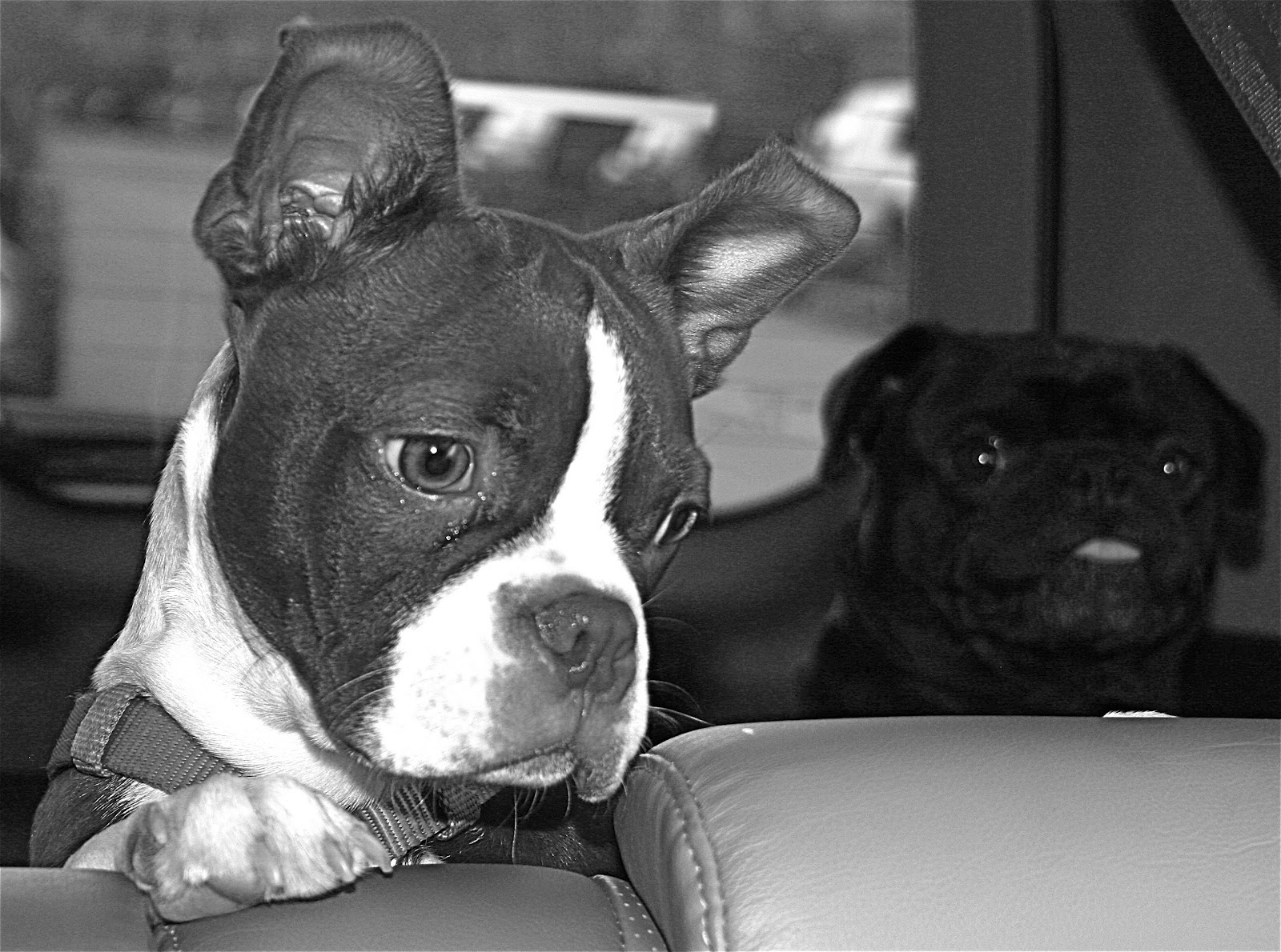 My darling dog boys: Pablo and Fernando on a recent car ride. Fernando’s (little black dude in back) expression cracks me up!