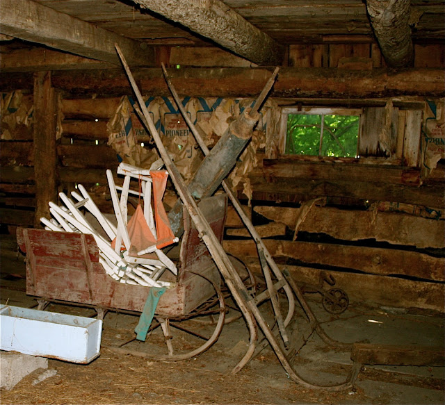 | Inside the barn an old sleigh has been left–I think it has been on here since its last use and was the Arthurs. |
