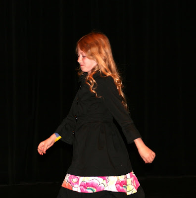 Tabitha walking back to her seat after playing. Note the bandaids on her forearm (yellow and blue). Those bandaids caused a horrible allergic reaction and her skin literally peeled away underneath them leaving a raw, weeping wound on her arm! I was very cross at her–she’d put the bandaids on herself days ago secretly to “doctor” a tiny little scrape.