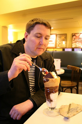 Walked around Pacific Heights last night. So many fascinating Victorian homes. Ended up returning to the hotel too pooped to move. We had walked a total of 12 hours that day! We watched Benjamin Button in our bedroom and ordered room service. We always end up splitting a club house sandwich. It goes a long way, and we’re usually not that hungry.