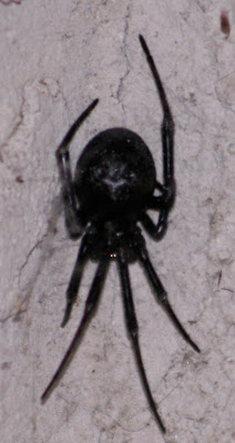 This is our newest uninvited house guest. The 4th Black Widow this week and she is by far the biggest 2″and perhaps the nastiest. She resides just outside the front door in what was, last time I checked, a male black widow’s nest.