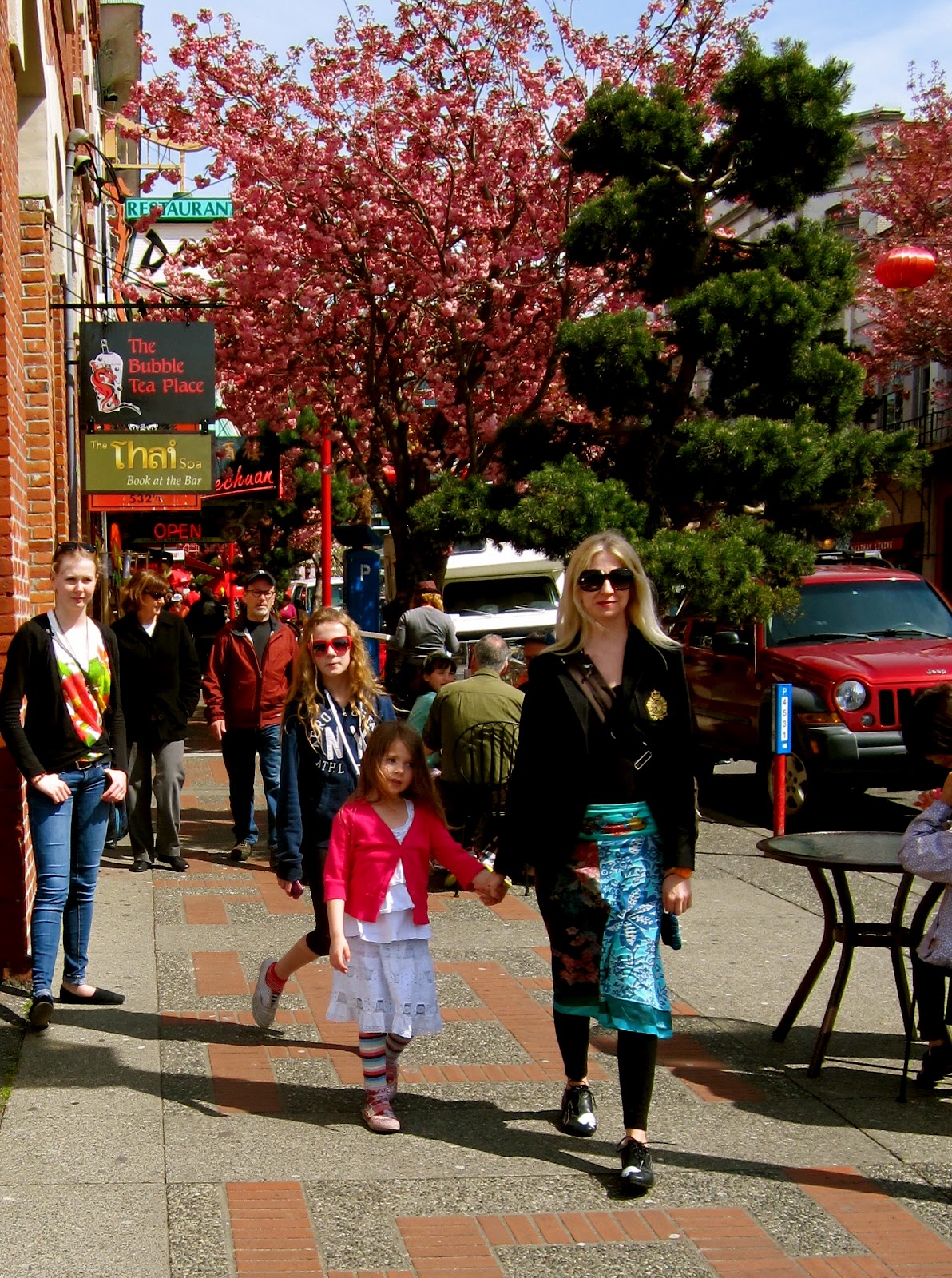 Peter and the girls in China Town–all of the trees in full blossom. A perfect day to explore.