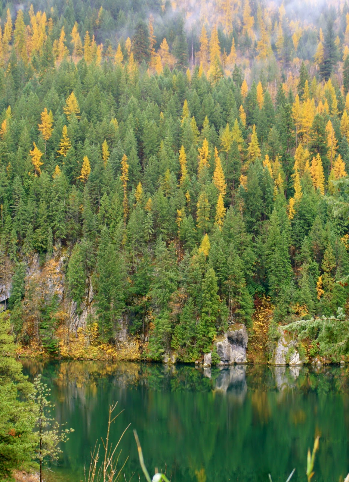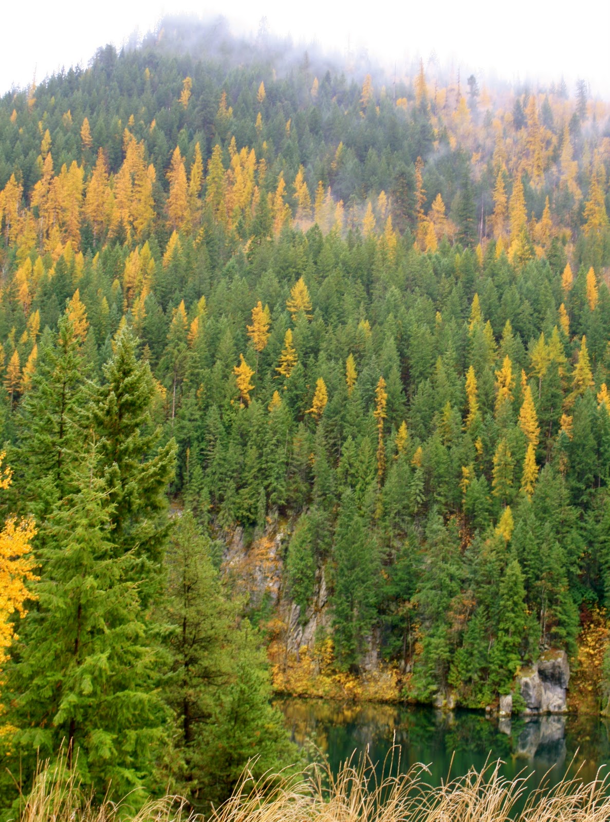 Pics were taken from the highway on our way home through the Kootneys. The tamarack trees have turned yellow.