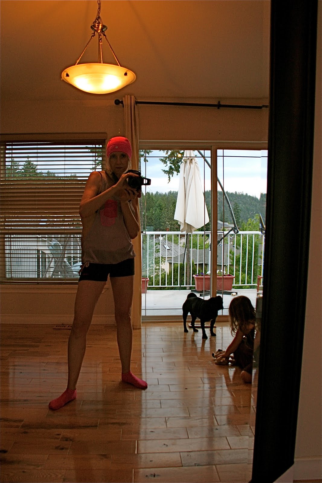 I cleared all the furniture out of our dining room (except the piano) and turned it into a dance studio. I LOVE it! I purchased a giant wall mirror from Homesense.