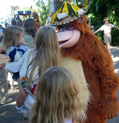Animal Kingdom–an adventure extraordinaire! I so stupidly let the kids go on the rapid ride first thing (the line was empty and no need for a fastpass). Hello Melissa! There was a reason the line was empty so early in the cool morning! They got completely drenched! The morning was cool in the shade (the entire Kingdom is under a jungle). I ended up having to purchase sweat pants and hoodies and flip flop for all the girls. Kyran was fine–so he said. But that boy swims in Kootney Lake for 8 months of the year. He seems impermeable to any damp cold conditions.