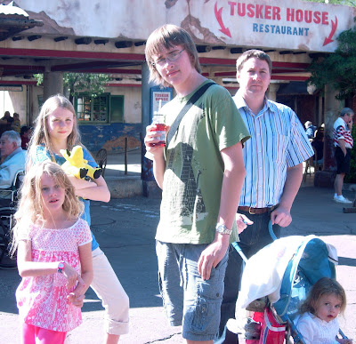 Hollywood Studios– a cool day for Florida–a bit of a nasty wind despite the brilliant sun shine and blue sky. I so wish I had brought a hoodie on this trip! The Muppet Movie adventure was very entertaining for everyone. Gotta love those 2 old men puppets and Miss Piggy, of course. Star Wars ride was also enjoyable. Although Kyran got a little motion sick after sitting through 2 rides in a row. Pip is too short for most rides so I wait with a special pass and when the kids are done the ride we switch off and Peter stays with Pip (or Kyran or Mist) and then I get to go right on with up to 3 guests.