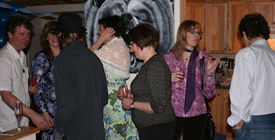 OMG…what a party. I am still tired from it. A good time was had by all. Theresa out did her party self and the party went off without a hitch. The lasagna, ceasar salad and garilc bread was scrumptious. Also the pre dinner appies: dalmades, spanikopita, and brie in pastry. Also my mom’s dessert squares and a big ice cream cake finished off the meal. The Dr. Peter Punch was delicious and mighty potent. My dad, of course, got into trouble for sneeking a slice of the cake befor we presented it to Peter!