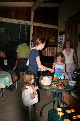 Theresa and my clan dining in Theresa’s outdooor El-fresco dining area.