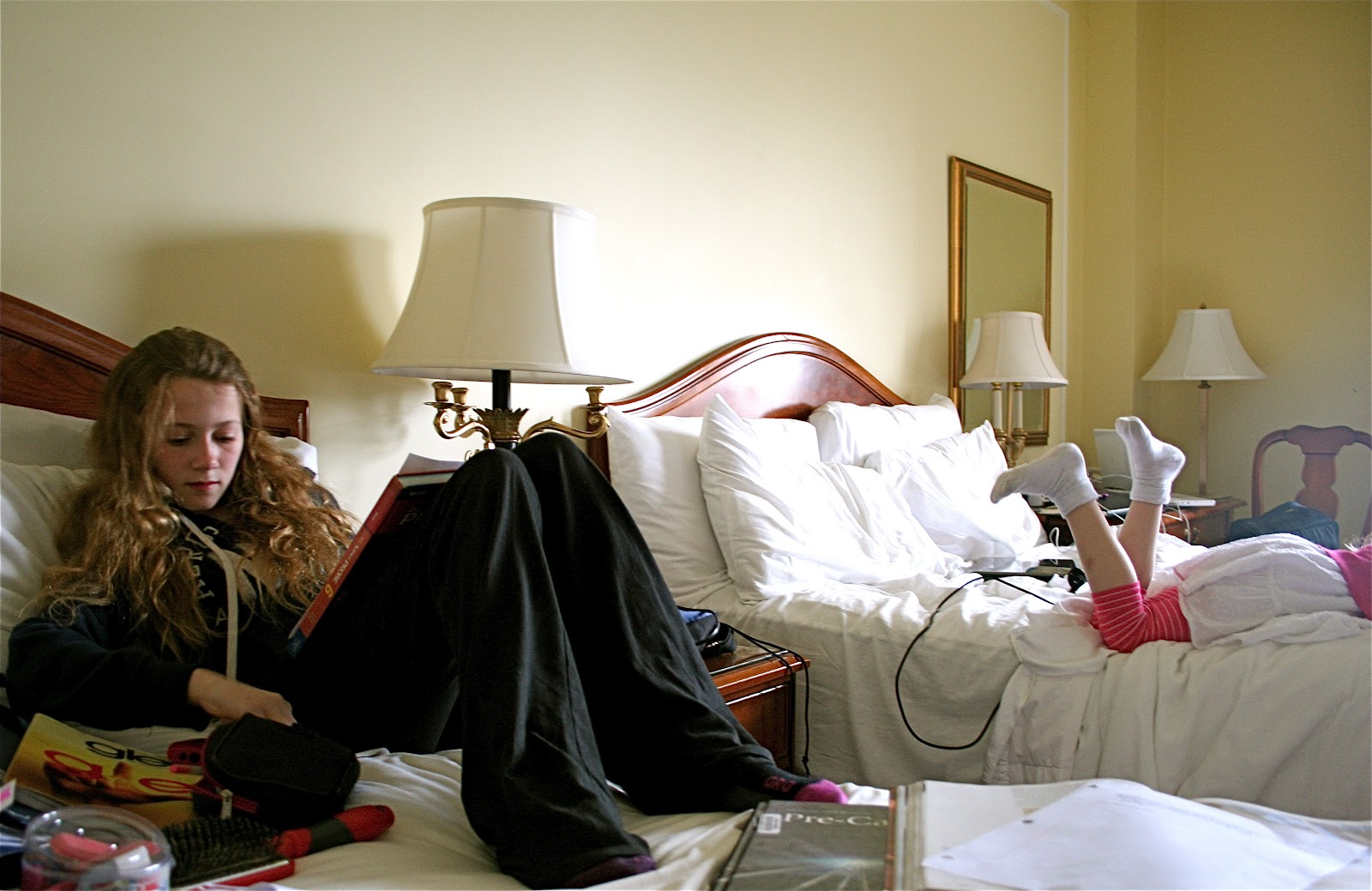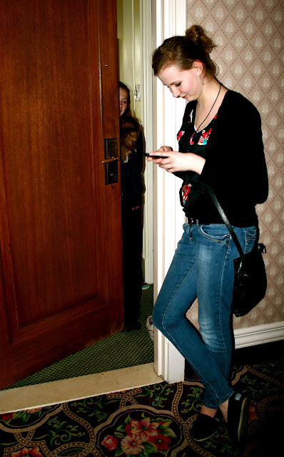 | Mist texting as she waits for Tabs to let her in the room |