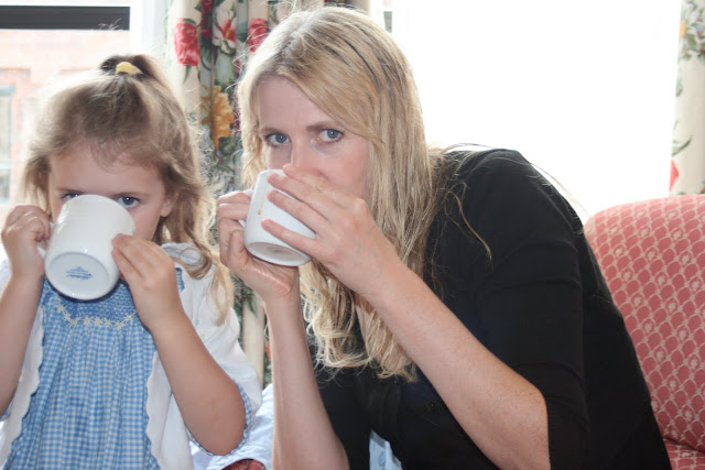 Pip and I in our hotel room, enjoying morning tea.