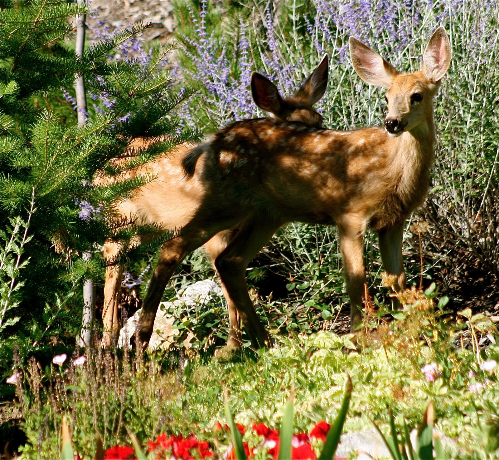 | Twin Fawns in my backyard this morning. They were very precious. |