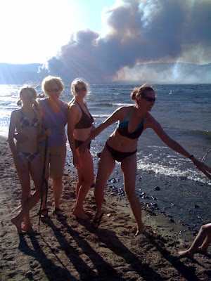 These photos were taken only an hour ago. Behind us, across the lake, rages another horrid fire. 4000 homes have been evacuated in West Kelowna. The Fire jumped the highway. If you are trying to reach Kelowna from Vancouver–you’re out of luck. To make matters worse, another fire is burning across the lake further down near my beloved Bear Creek. It is giving me flash backs to the devastating Okanagan Mountain Park Fire that raged through Kelowna six years ago. However, this time I am wiser and if the smoke gets too thick I am heading down to Nelson to live until it clears. (Make up the guest rooms T!)