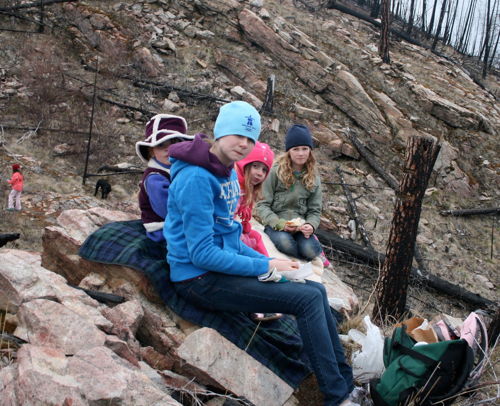 Johan and T: great observation skills and Nando is tied to a burnt tree so he won’t gobble up the kids sandwhiches.