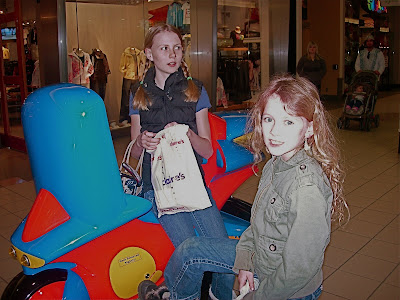 Shopping with Mist and Tabs. Tabs and I collapse in Chapters while Mistaya pays for her latest book series craze: “The Uglies.”