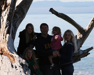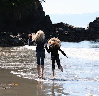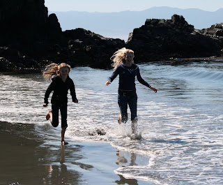 1 Mistaya and Tabitha playing on a giant tree root washed up onto the beach.