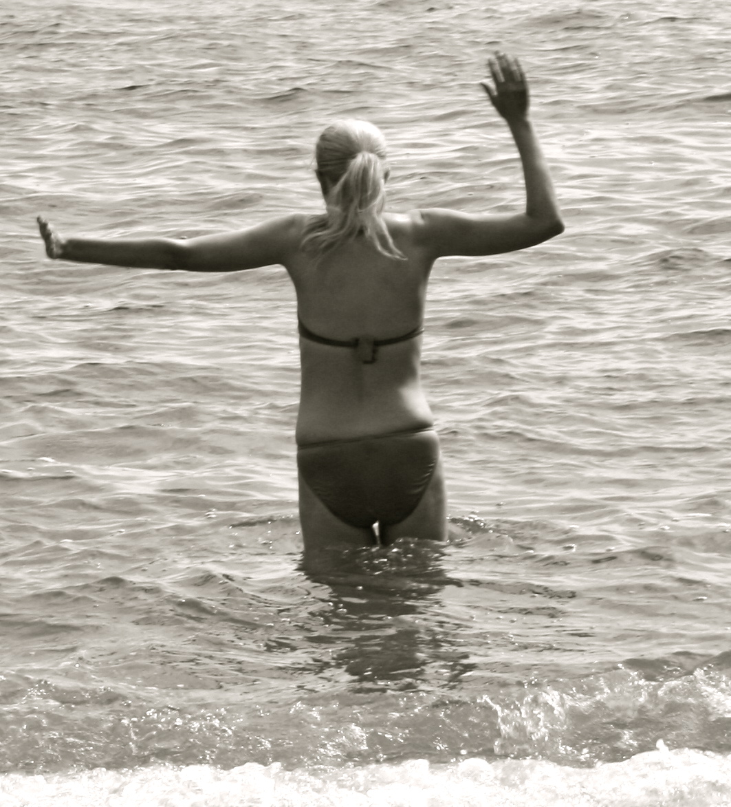 Anyway, despite my calf, I decided to go to dance class at noon and then afterward pack a lunch for the beach and read a book I need to finish. I packed up everything perfectly: lunch, beachwear, beach umbrella etc. The only thing I forgot were shoes. I wore my dance shoes to dance in but one cannot walk to the beach in dance shoes. After a gruelling workout, I changed at the studio into my new bikini (I got an amazing deal while visiting my parents in Kamloops on the weekend–70% off). Once I arrived near the beach, I decided to walk barefoot from the car to the beach.
