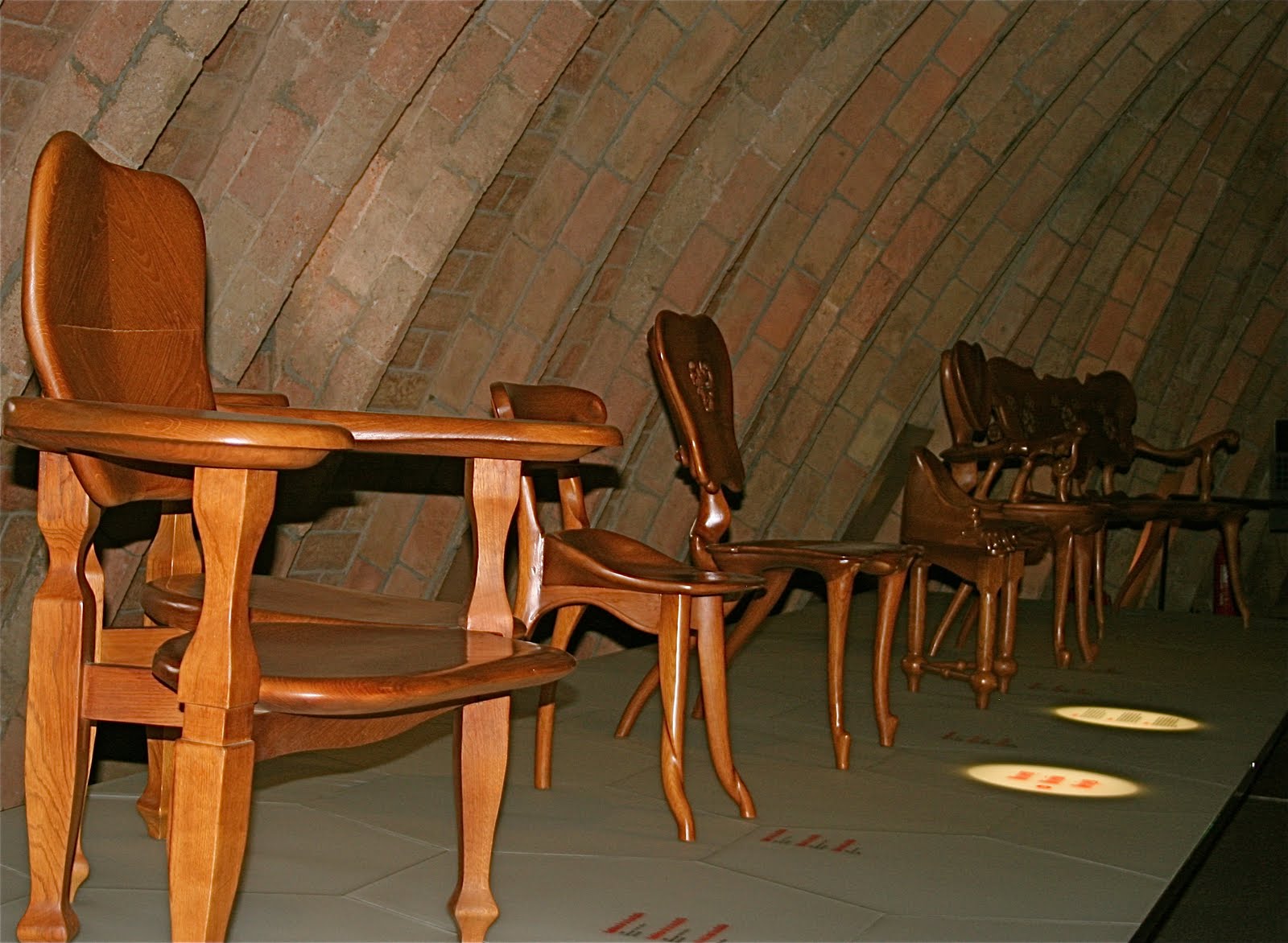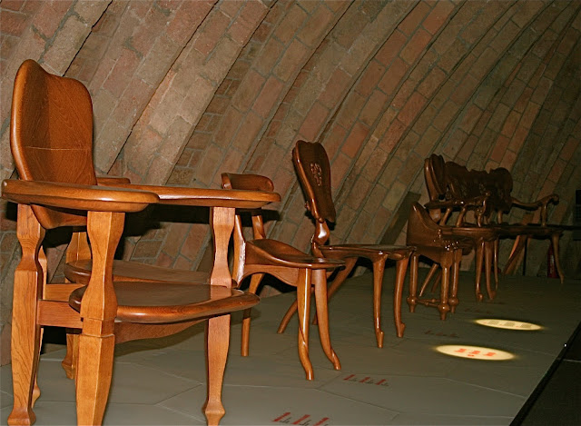 | A few Gaudi designed chairs in the attic–many of his attics seem to be inspired by the vertebrae of a whale |