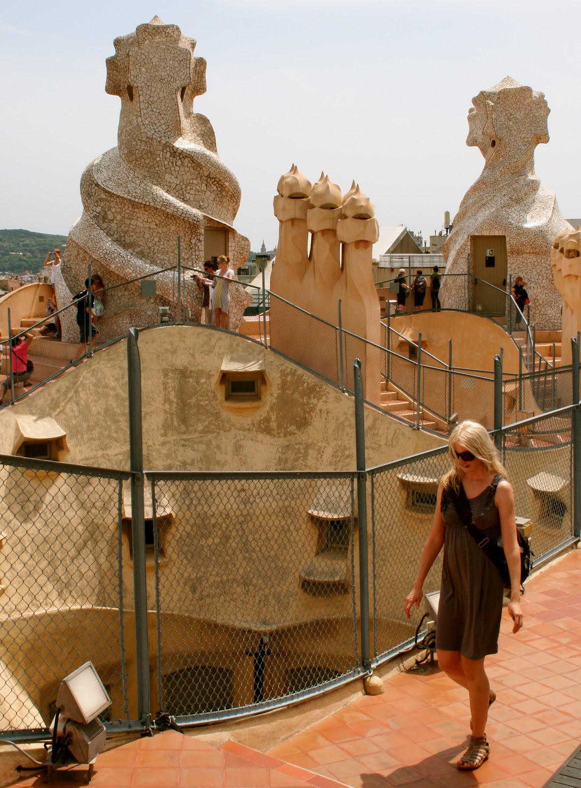 | The roof top terrace with some traditional Gaudi sculptures |