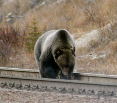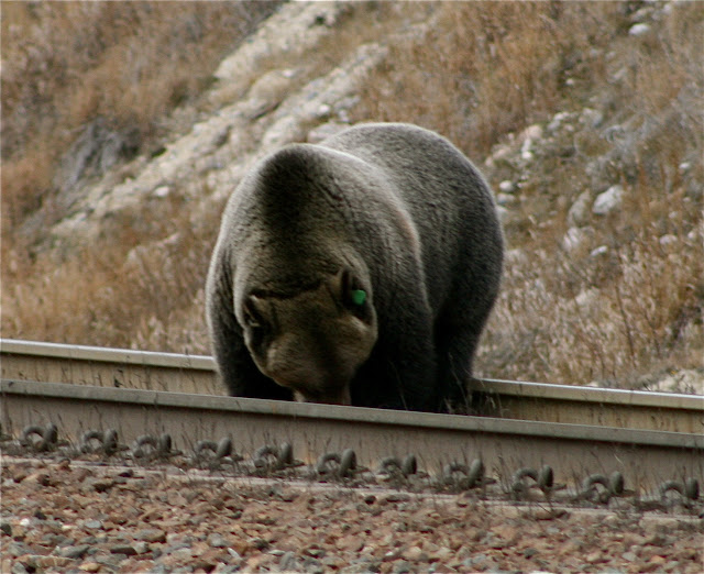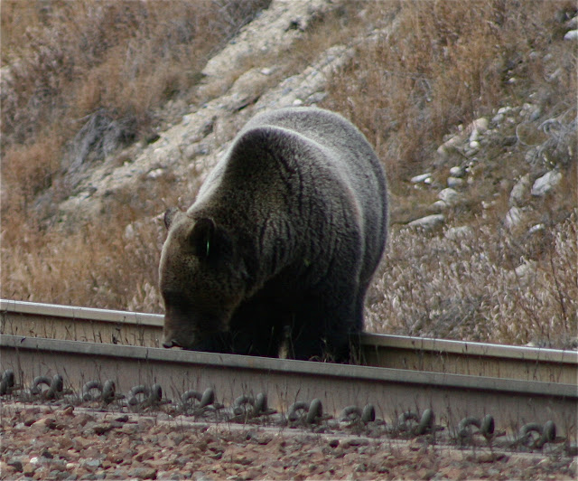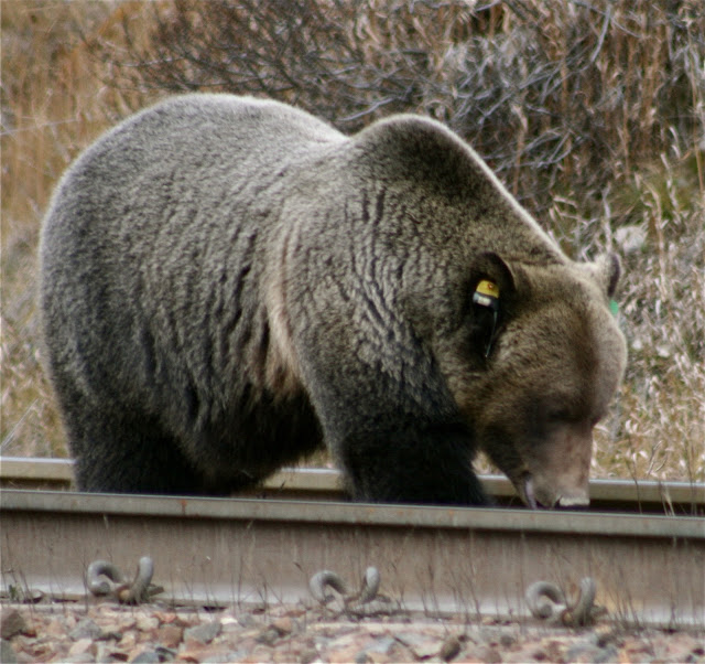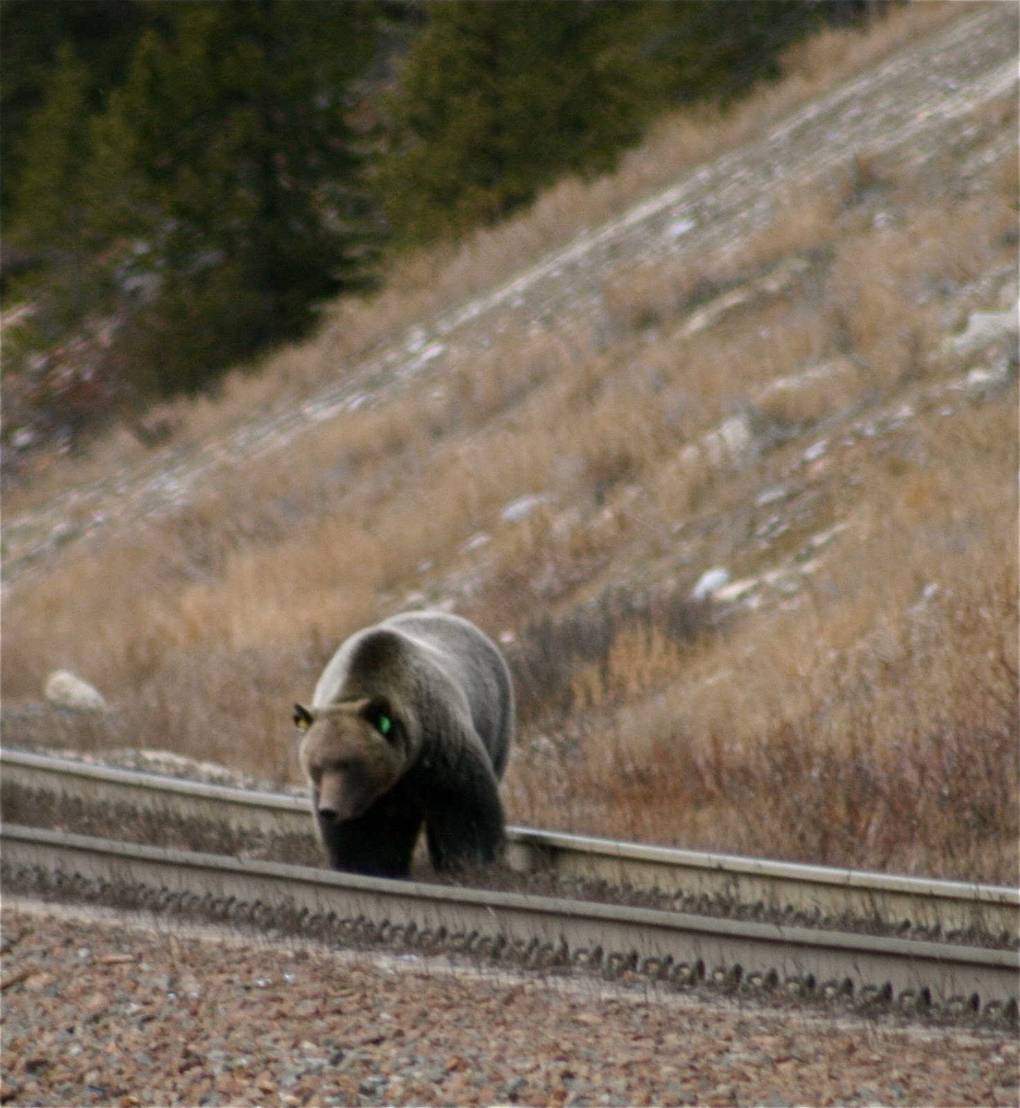 *Update: I recently learned the sad truth about why this grizzly was on the railway tracks. The reason is grain. Railway cars leak grain. The containers are poorly designed and often loose their entire load of grain by the time they reach the coast. The cost of this leakage is death for the bears. Most bears in BC and Alberta loose their lives to trains. The only reason is that they migrate towards the tracks to eat the spilled grain. Don’t you think it is time we designed better grain cars? Is a grizzlies life worth nothing to our government?