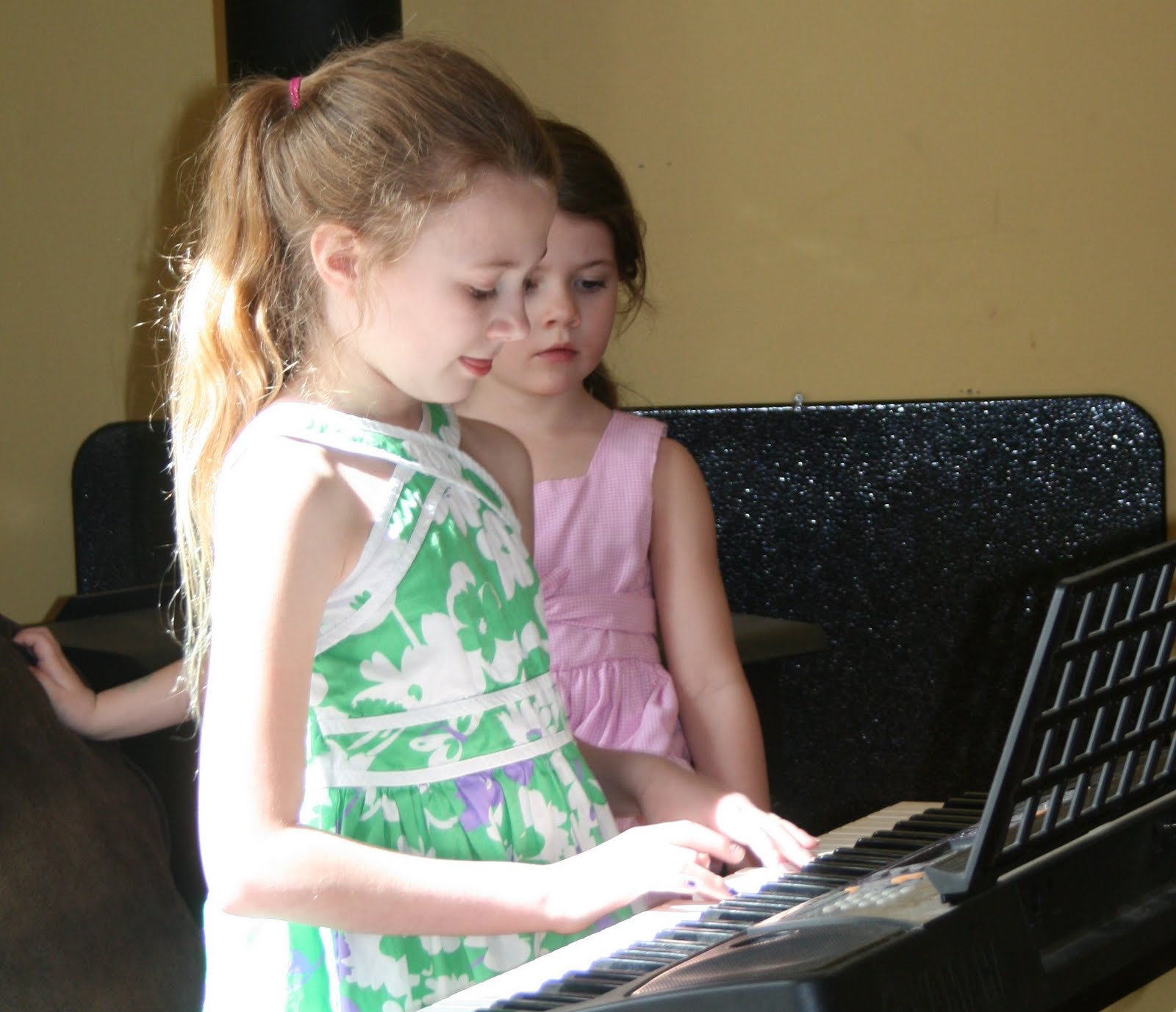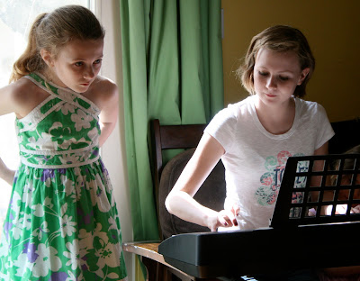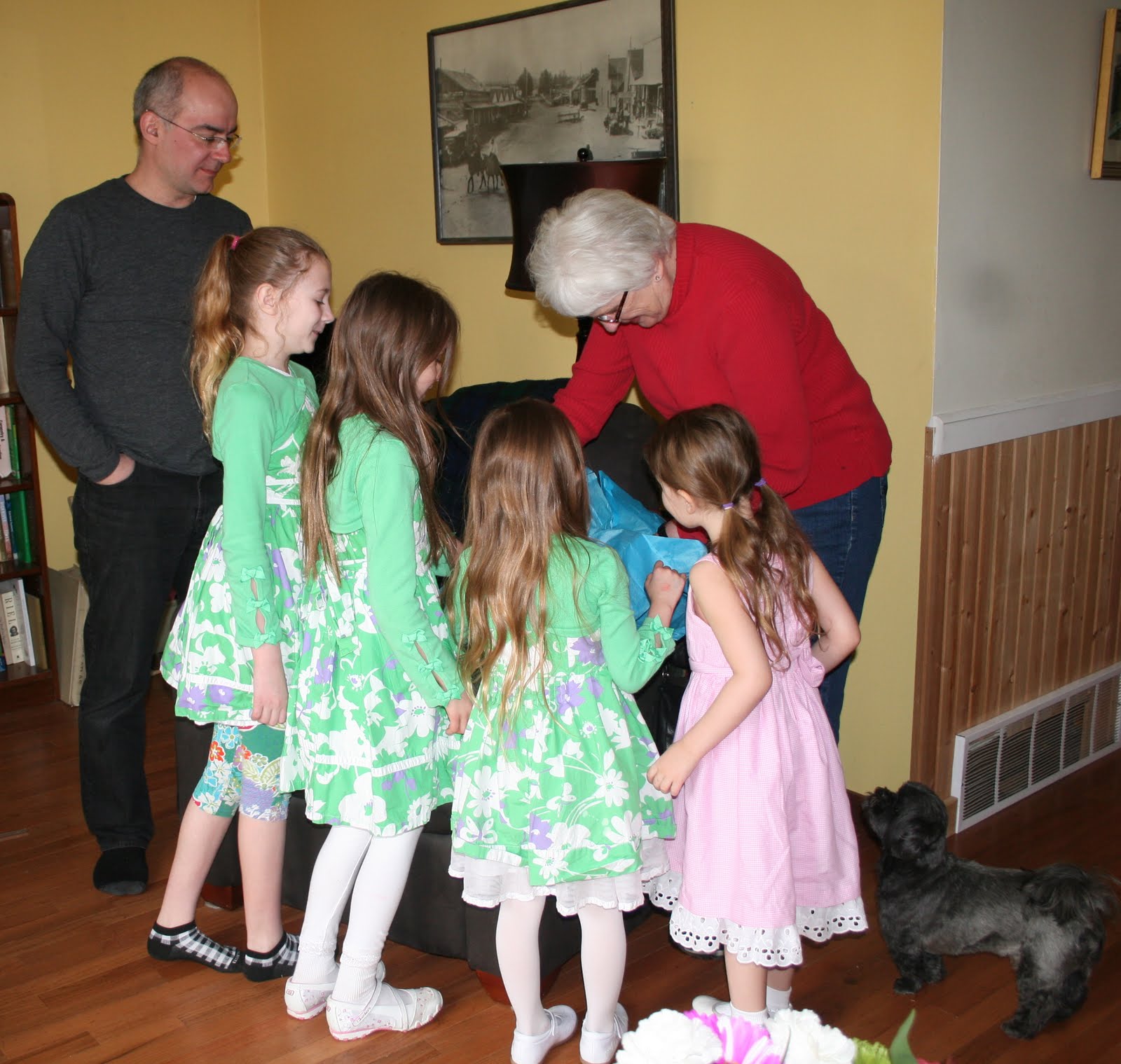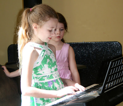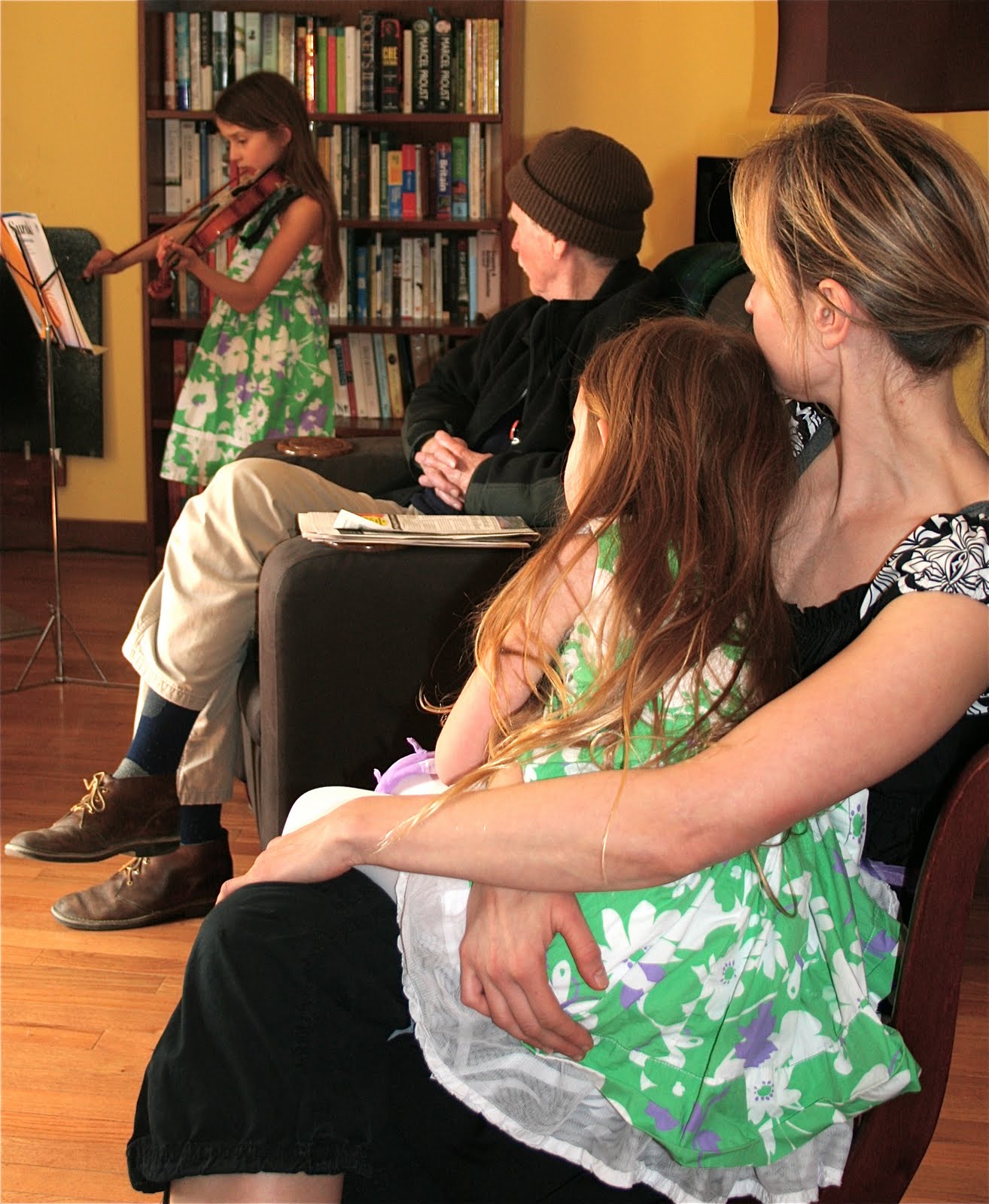 | My niece Anemone playing for her Granny (my dad, Miranda and Artemisia enjoying the music) |