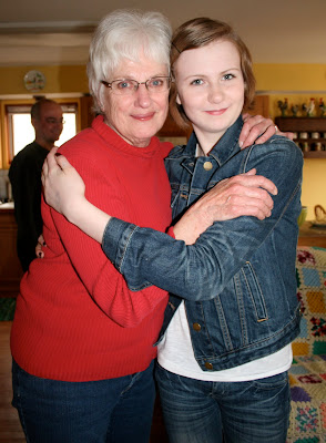 Miranda and I and our families drove to Kamloops to surprise my mom on her 70th birthday. Miranda prepared an amazing lunch she made herself: home made croissants, brie-pear-prosciutto tart, salad with pumpkin seeds-feta-beets, ginger-lemon squares, cheese plate and strawberry plate. My girls and I made the cake together (yes even Pip).