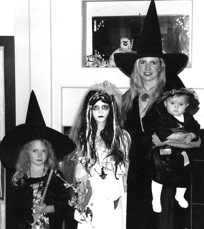 | Baby Pip’s first Halloween. Mom, Tabs and Pip a family of witches and Mist a corpse bride. |