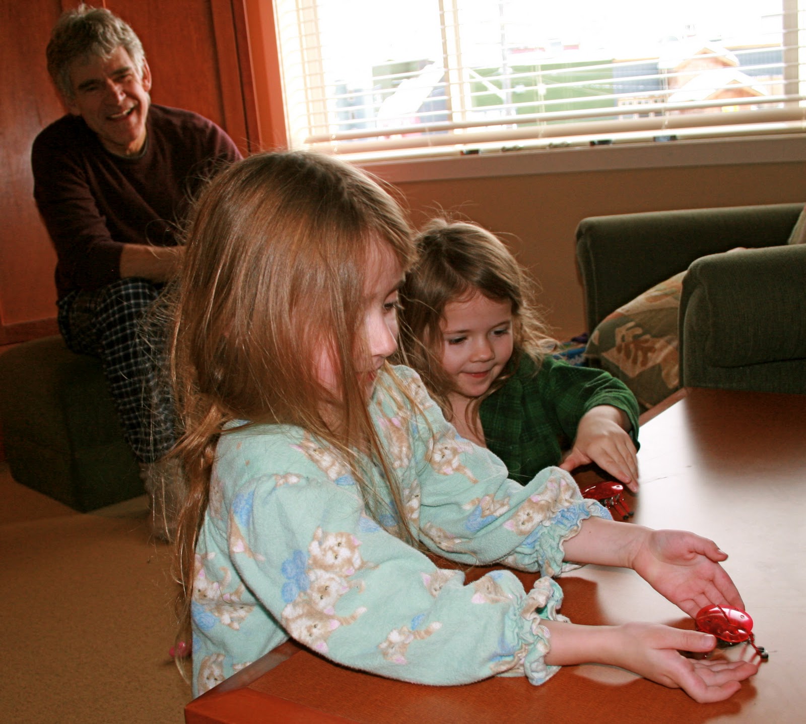 Joop watching the little ones and their HEX bugs on Christmas morn.