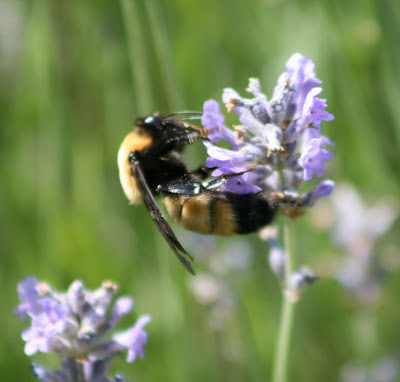 This was a very large bee–like a little hummingbird. I took this pic today in my backyard. I love bees, perhaps because my name means honey-bee.