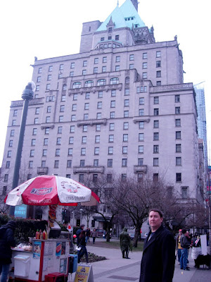 Yesterday was an adventure. I took the Airporter bus in from the airport while Peter headed straight to UBC with “The Candidate”–he’s been back and forth to Vancouver all month with various candidates applying for the position as head of UBC Libraries. The bizarre thing was that just as I stepped off the plane, a man walked down the hall right past me and I recognized him as my first cousin Jeff Novinger, who is from Calgary. I was going to run after him to say hi, but again, “The Candidate” had to leave for UBC immediately and I was in charge of hauling all of Peter’s and my luggage to the Fairmont alone. Thus, I had to go with Peter and crew to the luggage pick up immediately.