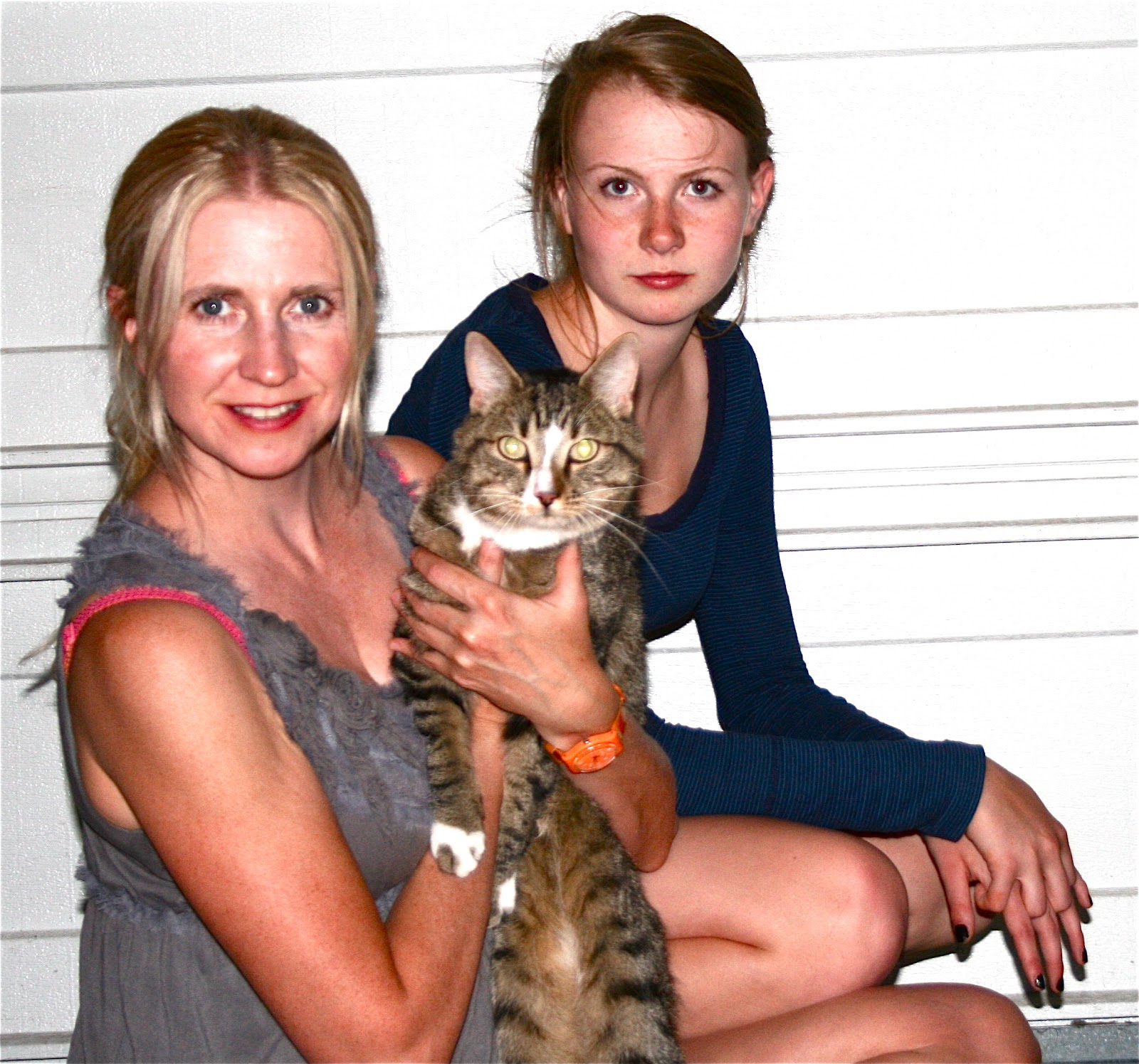 | Pyewacket, my daughter Mist and me, an hour after his rescue. |