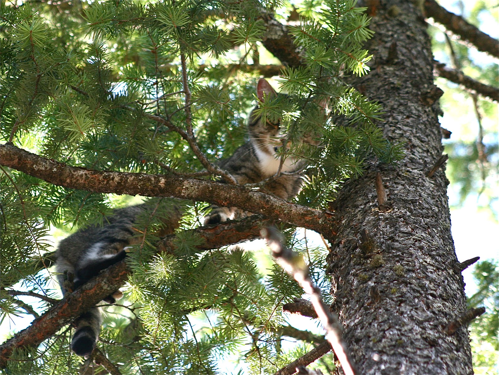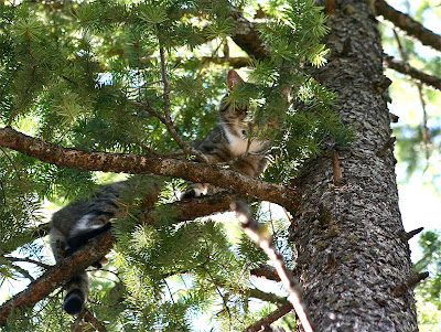 We drove home and my girls immediately joined the neighbor girls on a hike on the mountain behind our home. Within a half an hour they were back. They’d discovered a cat, high in a skinny pine tree, howling. The cat was at least forty feet up in the tree.