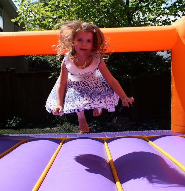 Yesterday my girls were soaring. Tabs jumped over 3 meters at long jump and Pip had a wonderful time in the bouncy castle at her year-end preschool party. After track, I took Tabs with me to Pip’s party. Tabs loved being the “big girl” helper and was assigned the job as official tattoo artist. I have a lovely orca on my arm thanks to her tattoo talents 😉