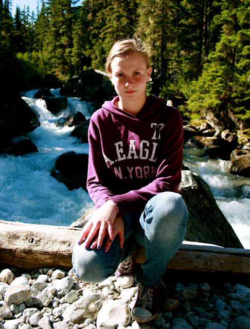 We decided to go on an early morning hike to the base of Illecillewaet Glacier and the meeting of the waters. We were ready to try and raise our core temperatures after one chilly night in the tent. I’d forgotten how !@#$%! cold it gets at night in the mountains. The hike was wonderous and especially so because the girls just loved it–they were so interested in every moss covered nook and cranny and every magical looking entrance to the forest. The forest is one of the only interior rain forests in the world. The rain from the coast of the Pacific Ocean and coastal mountains, floats over the dry Okanagan plateau (where I live) and dumps itself onto the Columbia Mountains. The forest is teaming with old growth cedars and hemlocks and lots of deliciously green moss–and a magical, fairy tale forest it is. There are so many hikes to choose from in this rain forest. I am ready to go back again only this time we’ll have mummy bags for everyone and toques to boot! |