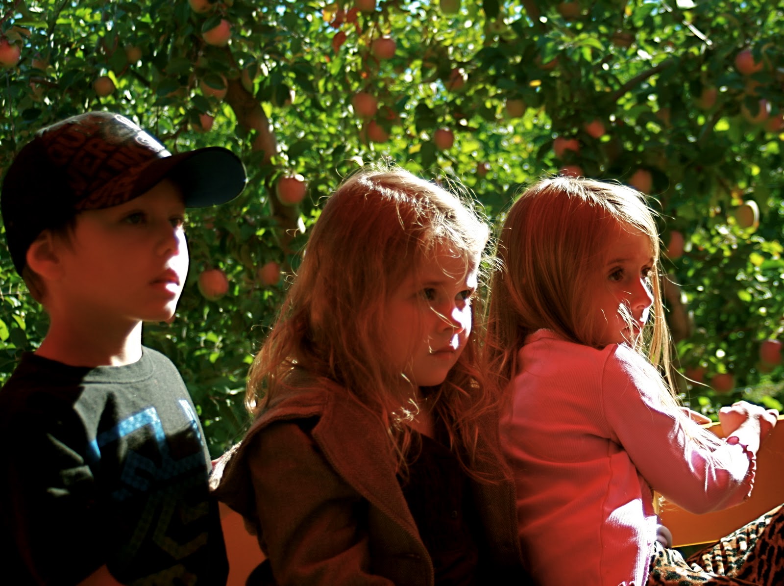I attended a field trip with Pip’s preschool. It is a popular orchard to tour. It is located above a steep cliff and beneath it is Mission Creek–full of Kokanee Salmon spawning. And where ever there’s an abundance of apples and fresh salmon you can find bears–and lots of them. The orchard is filled with bears in the morning. We witnessed giant piles of fresh bear poo everywhere and flattened paths the bears have made up the ravine and into the orchard. The most popular apples to grow now are: Galas, Green Delicious, Ambrosia and Fuji.