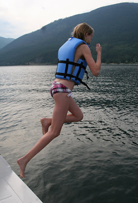 Mistaya heading into the cold water. The locals swear their Kootenay water is “refreshing” and think us Okanaganites whimps–but hey, we’re used to bath water down home in Lake Okanagan!