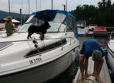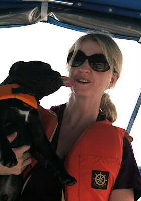 Fernando giving me a kiss–he missed his mom. However, boating has become a part of his regular lifestyle down here in the Kootenays–he lives the life of of Riley. (My pooch Fernando has spent the last month visiting my sister Theresa and her family in an attempt to train him–he had many bad puppy habits at my home–nipping Pip a lot).