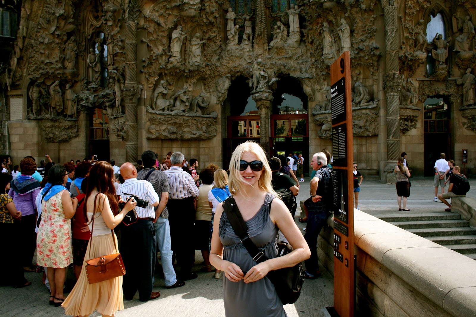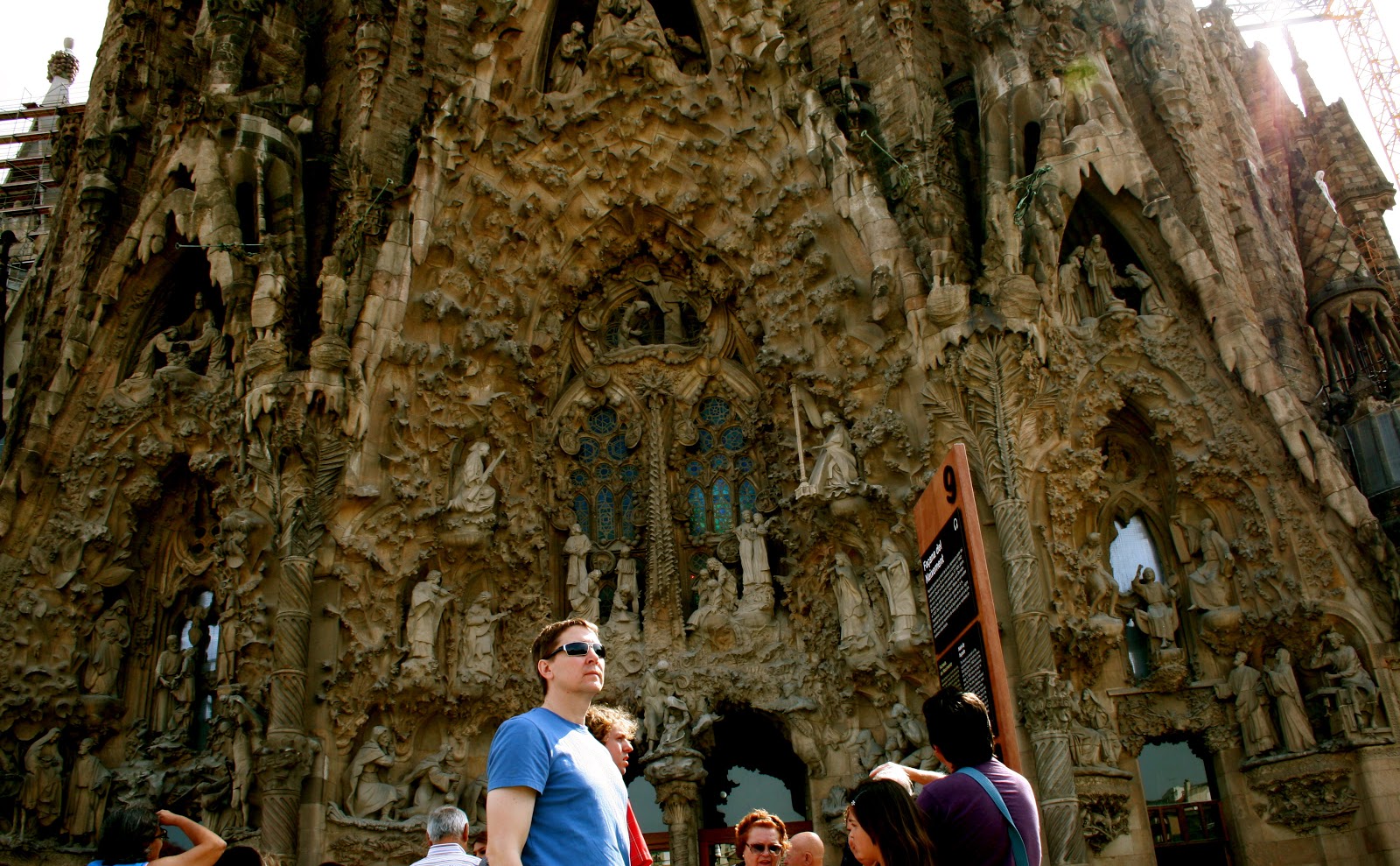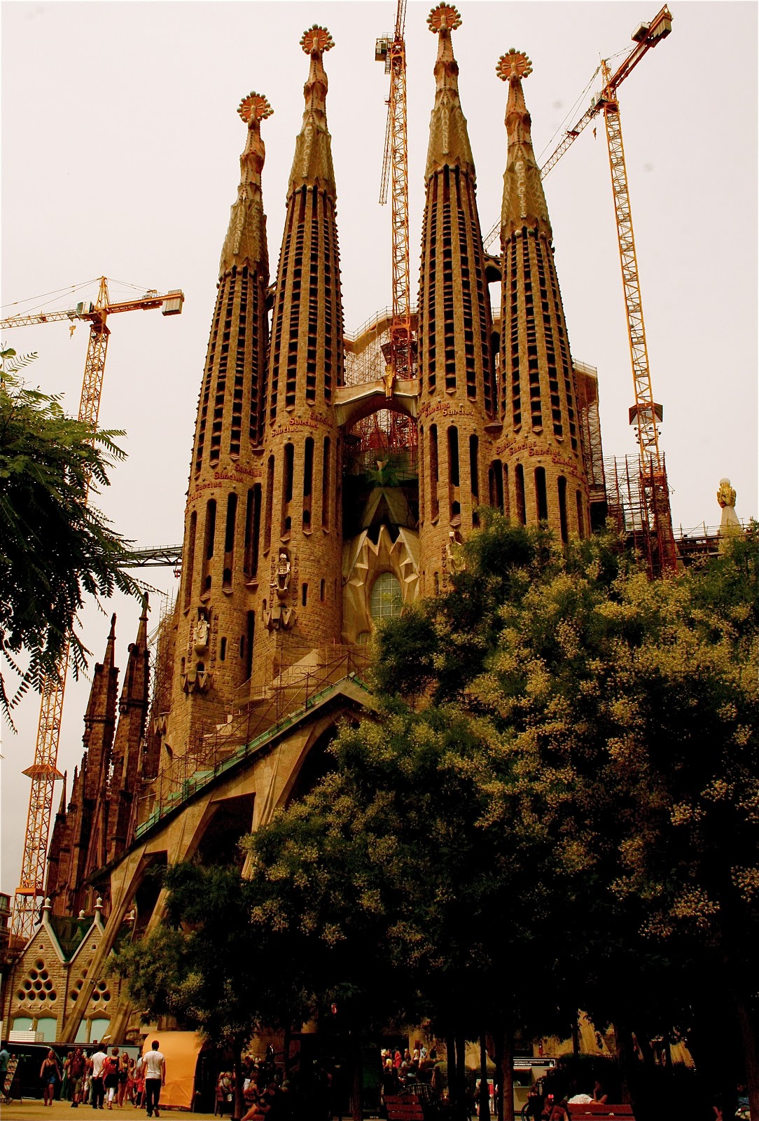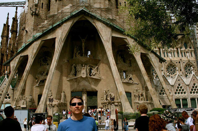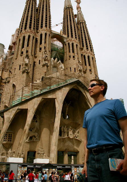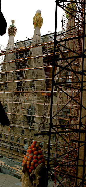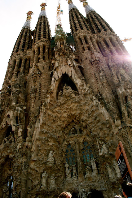 | Walked and walked and walked and finally there she is! The famous neo-gothic church: La Sagrada Familia. Gaudi started working on the project in 1883 and it is said to be completed in about 2040. |