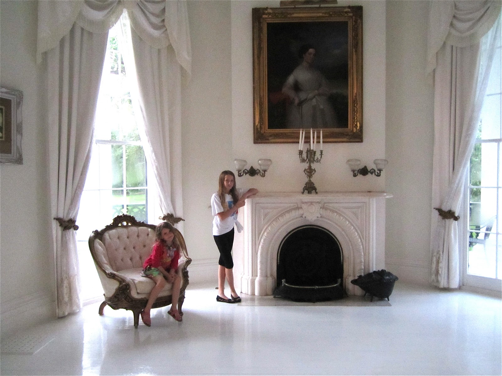 The most wonderful thing about visiting the Nottoway Plantation is staying the night. We have the freedom to wonder the mansion at our leisure. It is quiet and free of other tourists. I spent some time their tonight with my daughters, feeling the energy of the rooms and house, trying to imagine what it would be like to live in and around the time of the civil war. The strangest thing happened. Climbing the staircase, I reached a point where the energy was overwhelming familiar and I felt so comfortable and at home, it was as though I lived in the mansion. Each time I climbed the stairs onto the second level landing, the energy was the same. Pip sensed it too, it started at the very same stair for her. It was as though I seriously traveled back in time and felt the energy of the past home owners. The energy was so intense and over whelming that I had to sit on the stairs for awhile to figure it out. All I can say is it smelled familiar, looked familiar and felt in every way–it was though I was back visiting my childhood home–feeling such comfort at all the familiar surroundings. It was the most ghost like experience I’ve ever had.