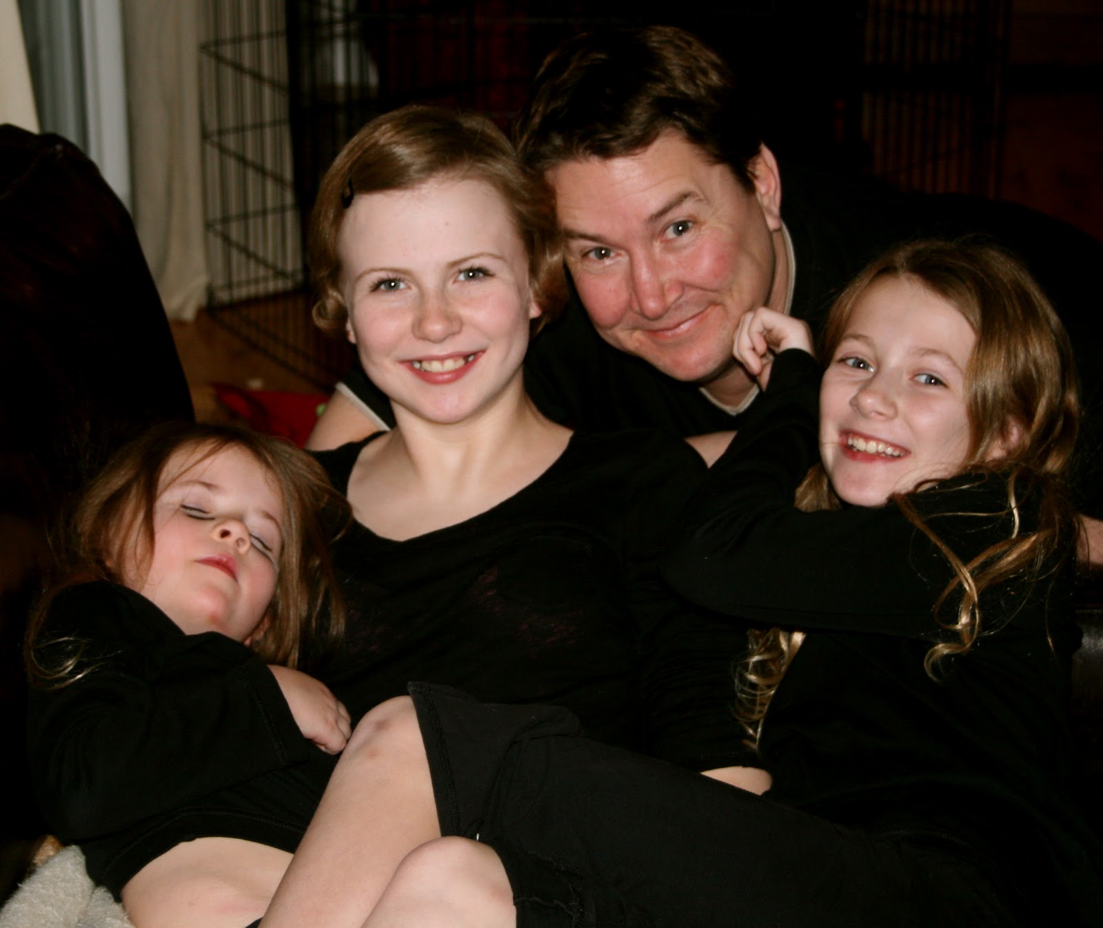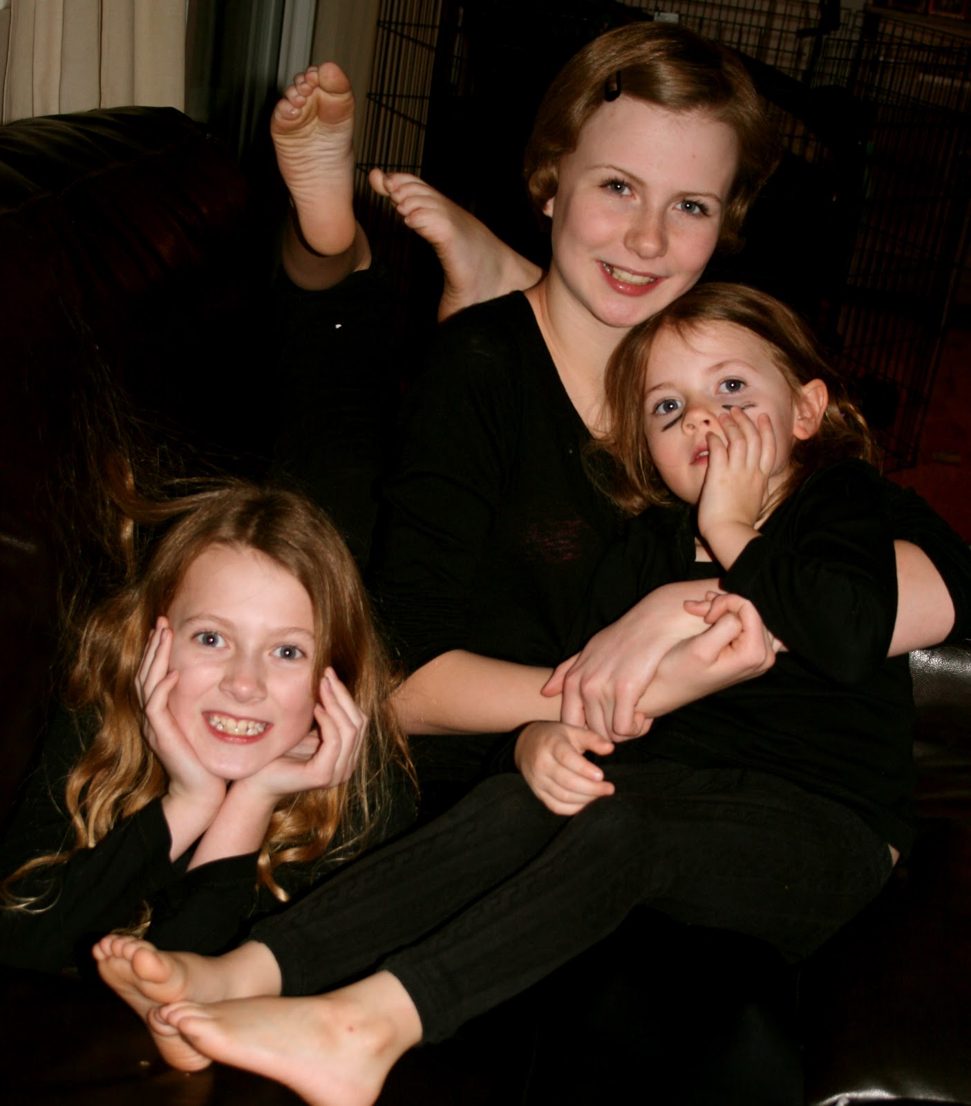 The girls getting ready for their camp out in the living room as night spies. They camped out with hopes of awakening at midnight to see the full moon/lunar eclipse and solstice all in one. They slept through it.