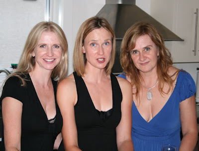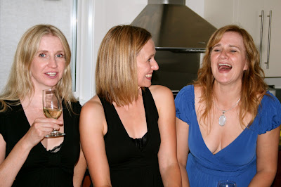 Sisters sharing a bad joke and some champagne.