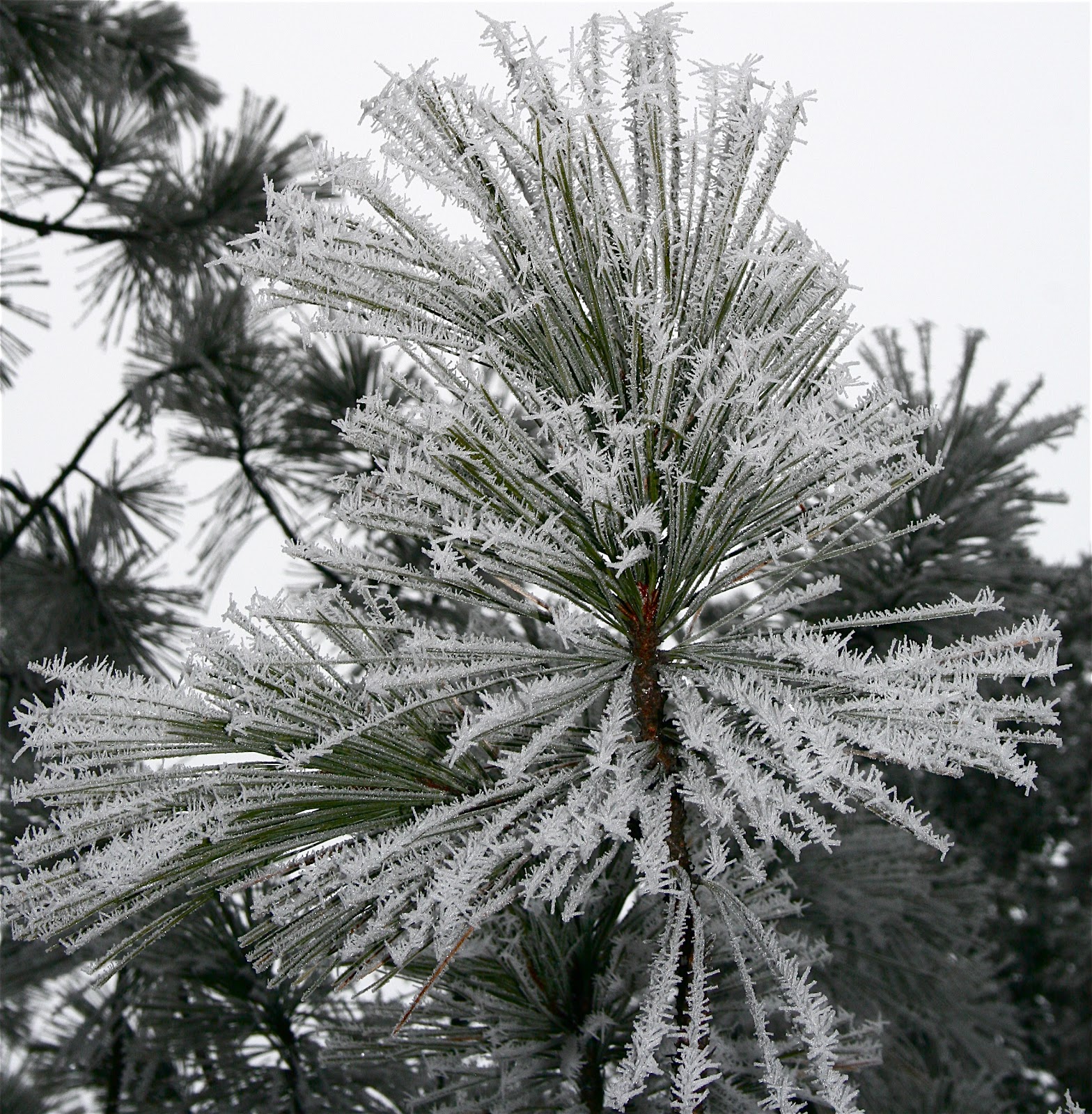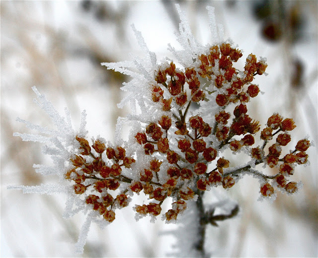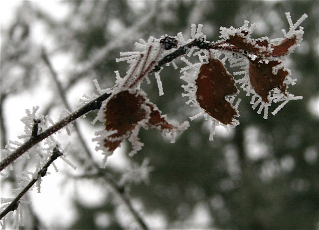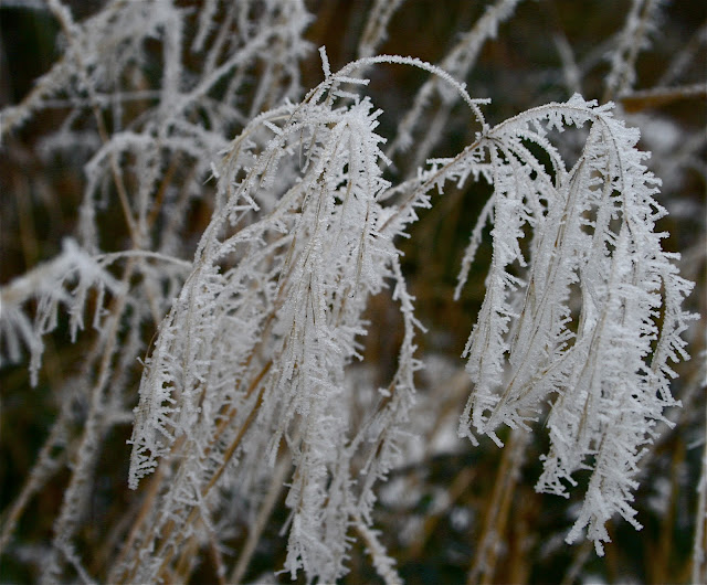 *Hoar frost refers to the white ice crystals, loosely deposited on the ground or exposed objects, that form on cold clear nights when heat losses into the open skies cause objects to become colder than the surrounding air.(Wikipedia)