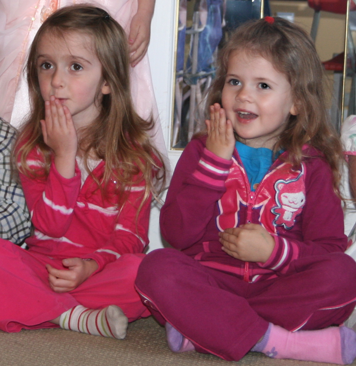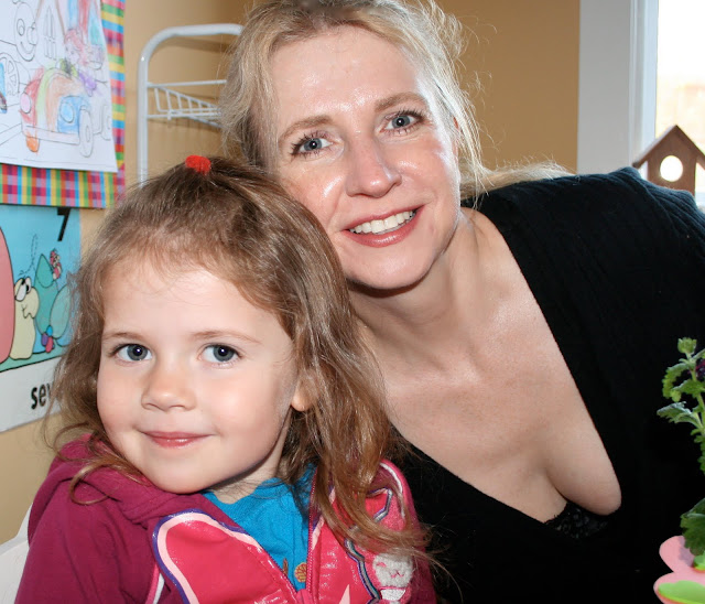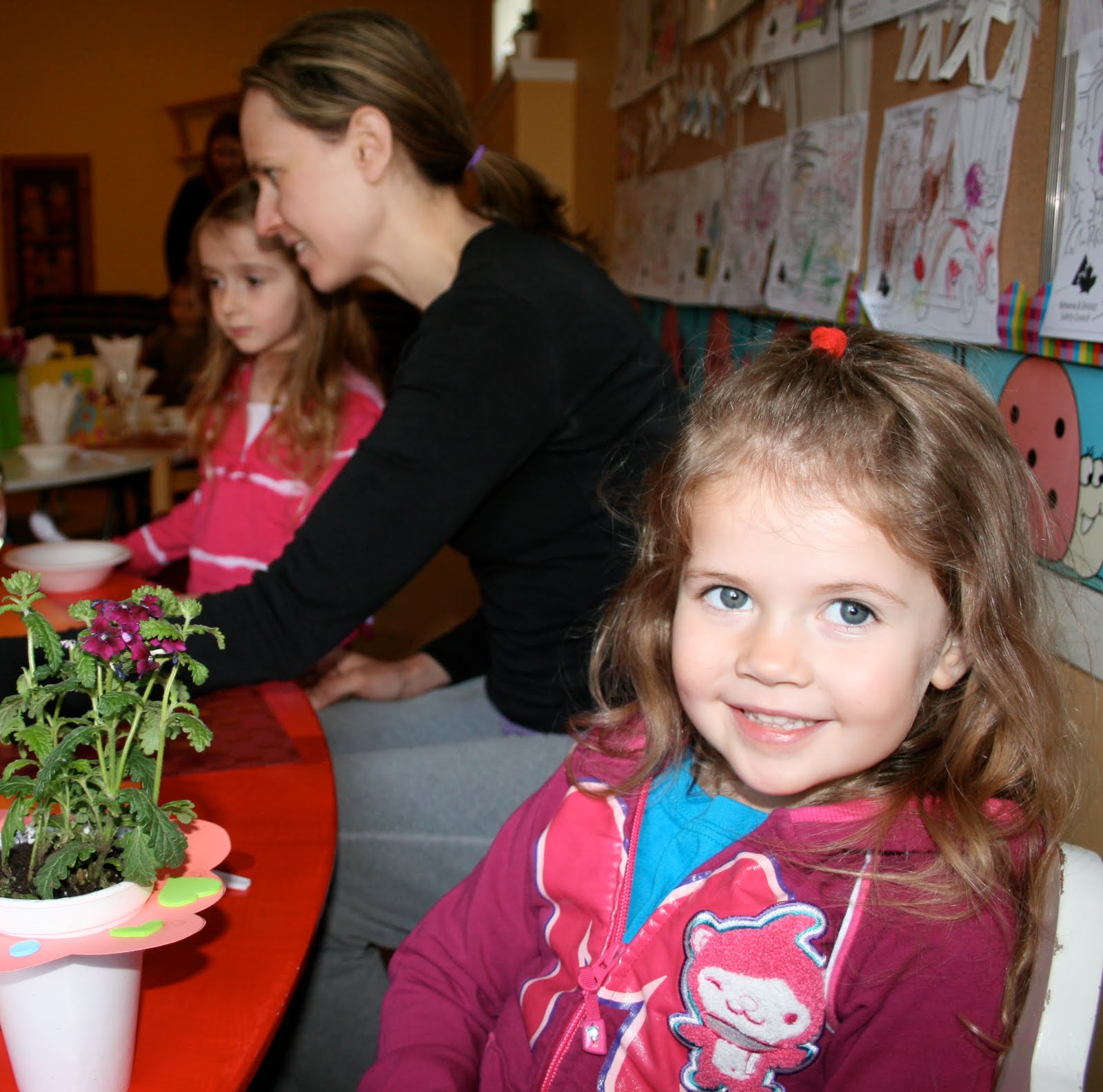 Pippi and Artemi with their mommies at preschool this morning. My face glows with sunscreen.