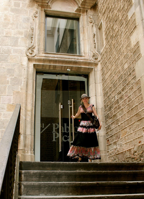 | Me entering the Picasso museum which is housed in a very old Barcelona mansion 14th C–built over Roman ruins. |