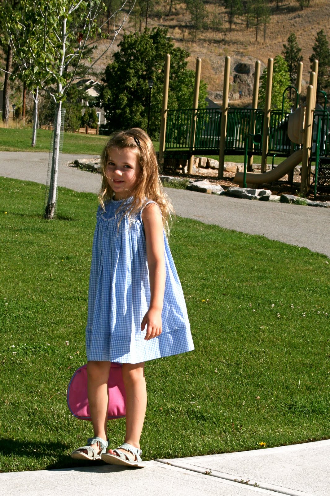 I’ve been saying the above phrase to Pip all morning so that is why it is the title of this blog–she had a little chocolate milk mustache after breakfast. Pictures are from Pippi’s first day of kindergarten. We stopped at the park before the big day for a picnic. Pip was so excited to start school, she was trembling and said, “this is the best day ever!”