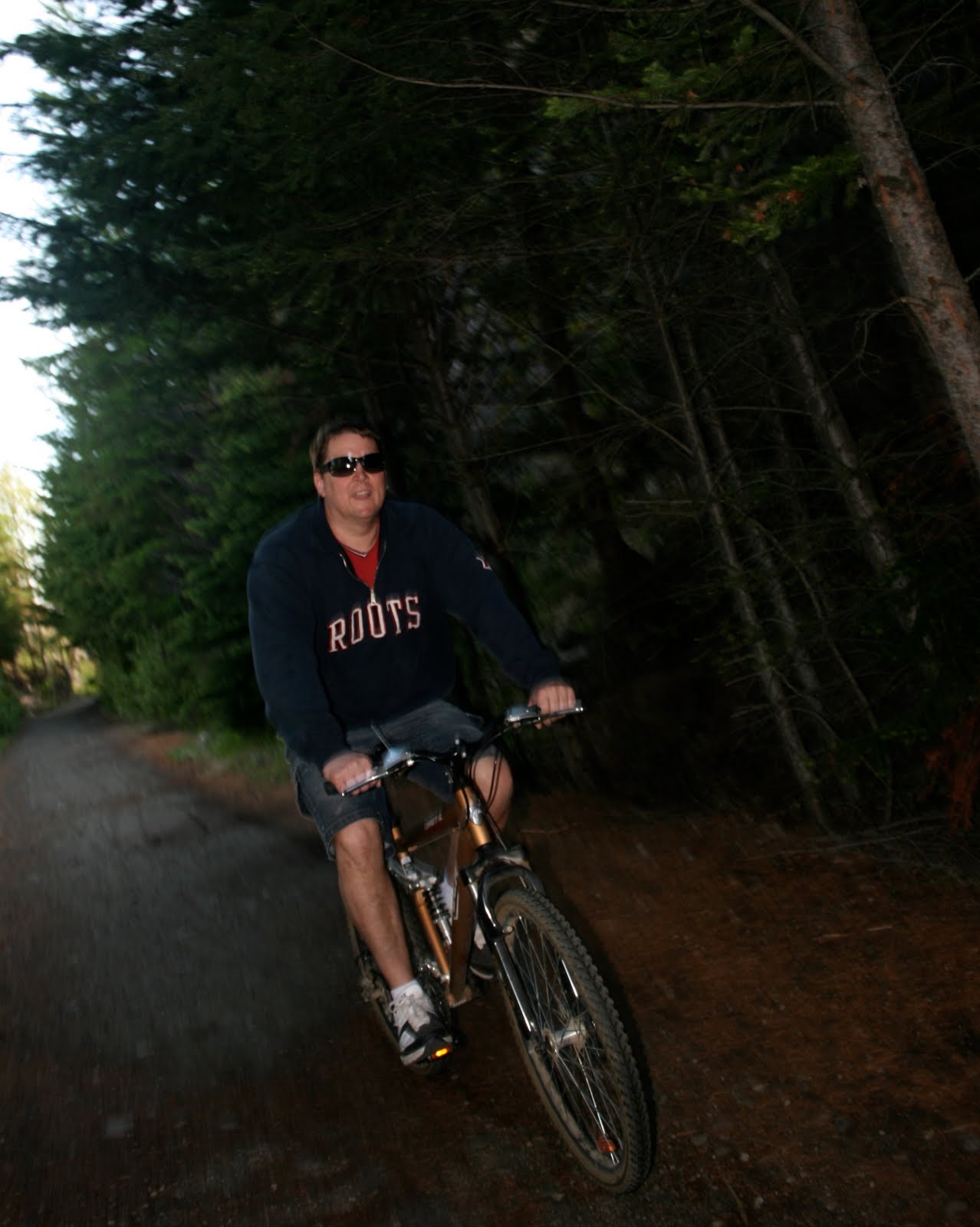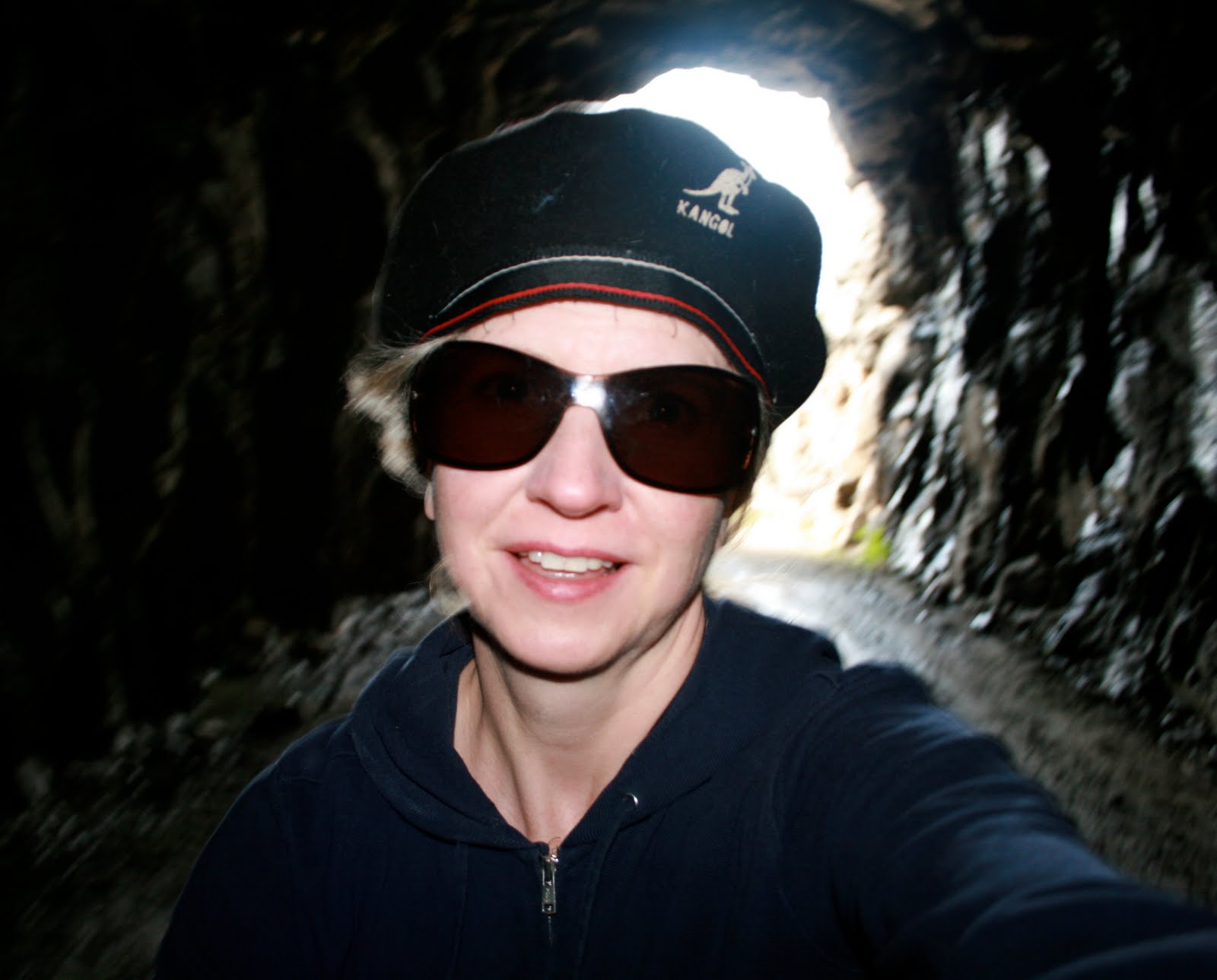 Next pick is me, biking through one of the train tunnels–I love taking photos in any situation, dark tunnel, cycling, camera in one hand. And the last pic is of Peter biking behind me. I just held the camera behind me and told him to bike in view on the lens–voila it worked.