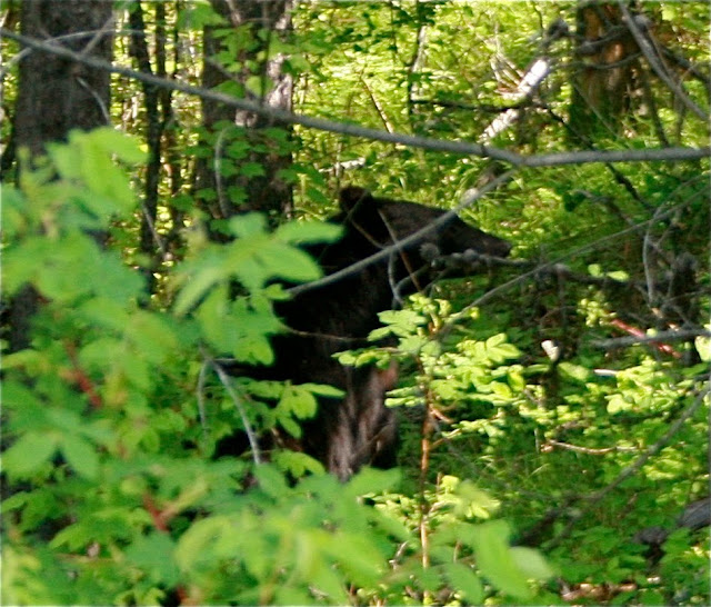 We saw this beautiful black bear on our way down from the canyon. Very fluffy and healthy looking–all this rain must have given her a good berry crop.