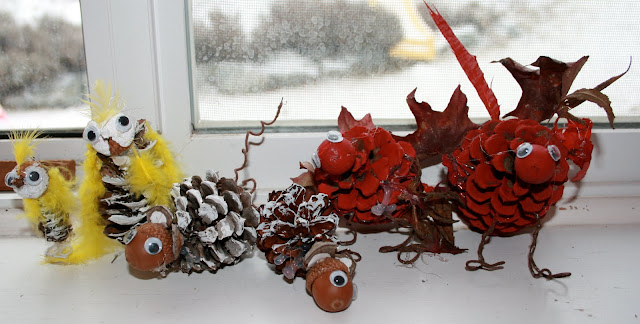 These crafts above were made by Tabs with supplies from Gran: penguins, mice and cardinals.